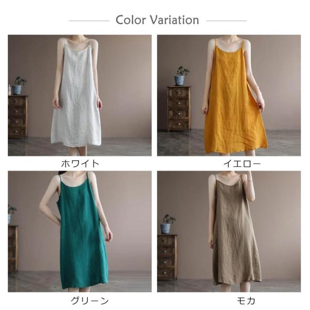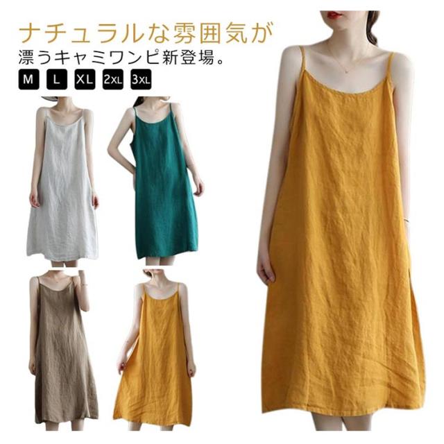 | ナチュラルな雰囲気が漂うキャミワンピ新登場。 豊富な4カラーバリエーションを楽しめましょう♪ 簡素な様式で使い勝手良い キャミワンピ様式で鎖骨を綺麗に見せ、程よいセクシーさを演出します。 ゆるゆるなシルエットで体型を問わずに着用できます。 一枚としても、トップスと合わせてもお洒落です。 薄手の綿麻生地で暑い季節に大活躍できます。 | |