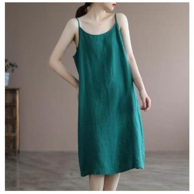 ワンピース ノースリーブ 綿麻 夏 リネンワンピ キャミワンピ 夏物 袖なし ロング ミモレ丈 ワンピース 重ね着 レイヤード Aライン シンプル 膝下 お出かけ 部屋着