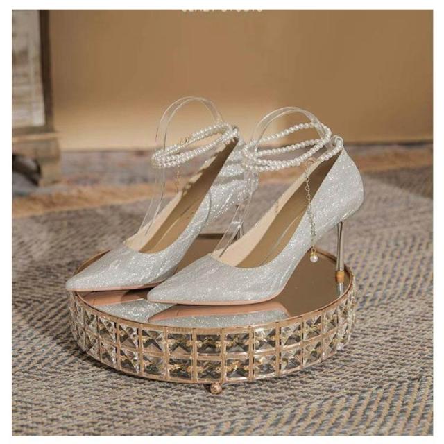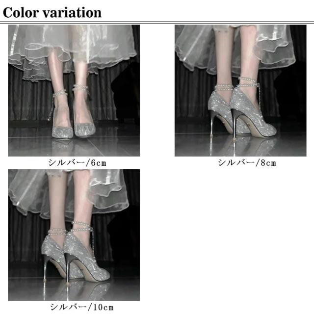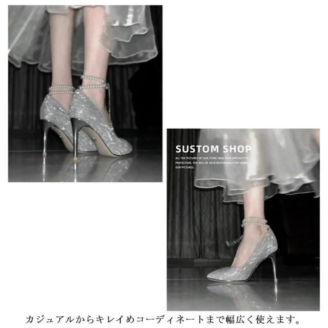 10cm ハイヒール ゴージャス レディース ハイヒール キラキラ 6cm 美脚 ピンヒール 披露宴 痛くない パール アンクルストラップ きれいめ ストラップ フォーマル 華やか ハイヒール パーティー 結婚式 8cm 謝恩会 お呼ばれ シルバー 大人女性 ギフト プレゼント