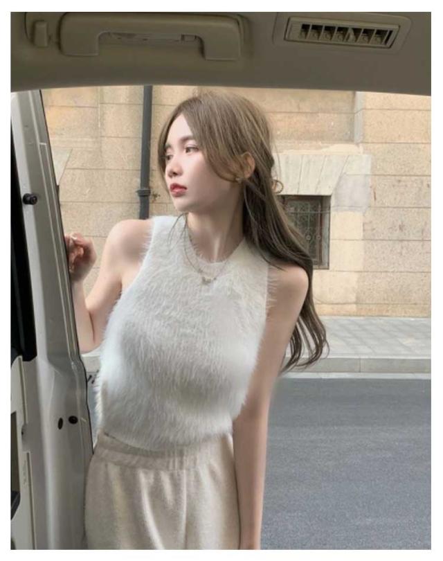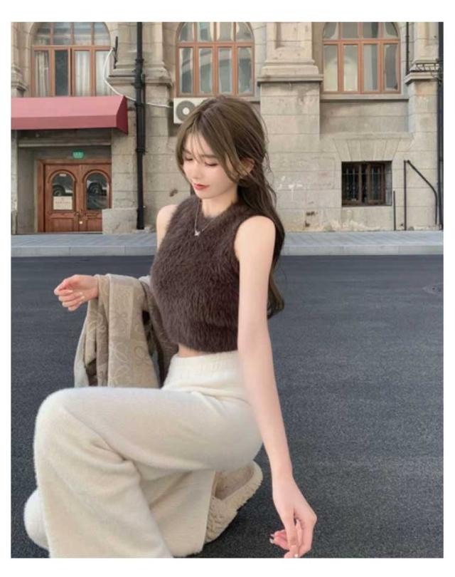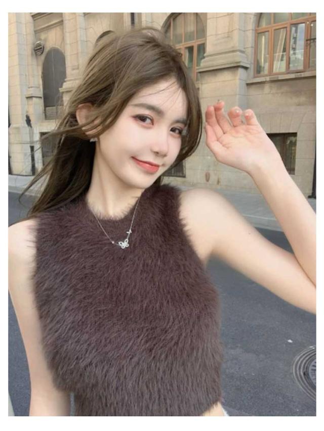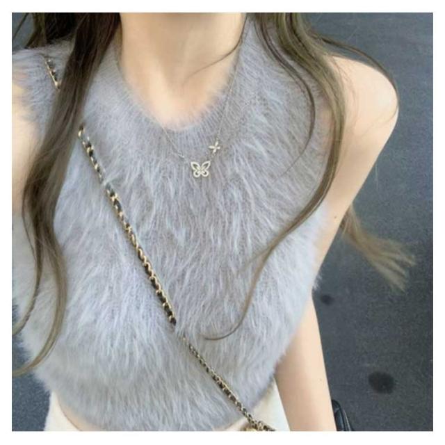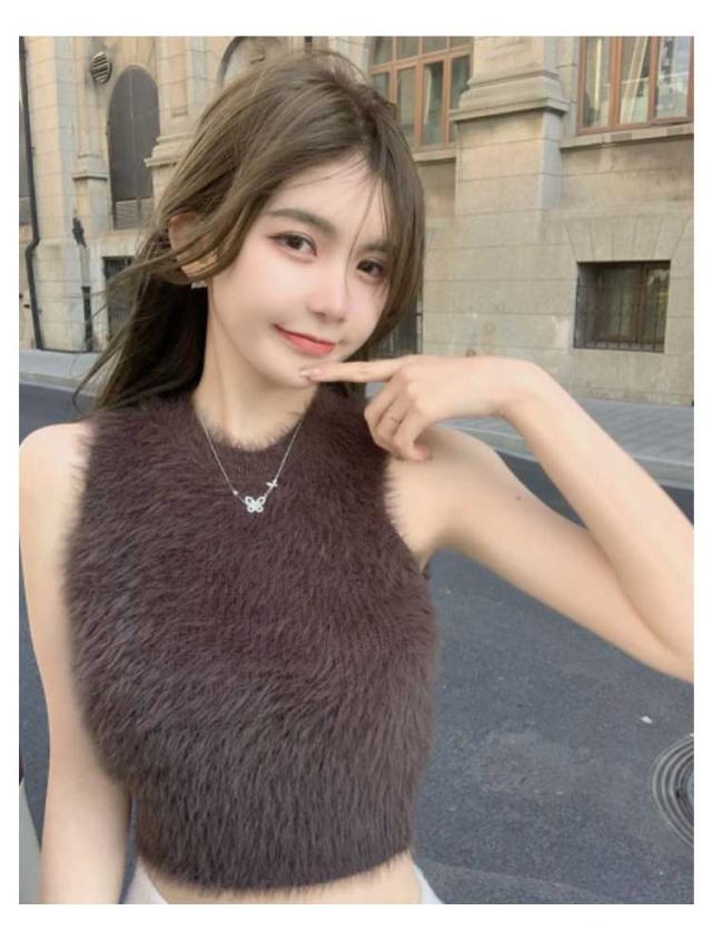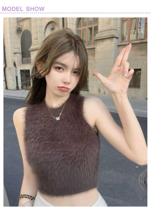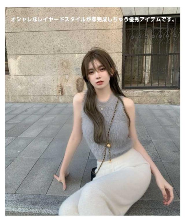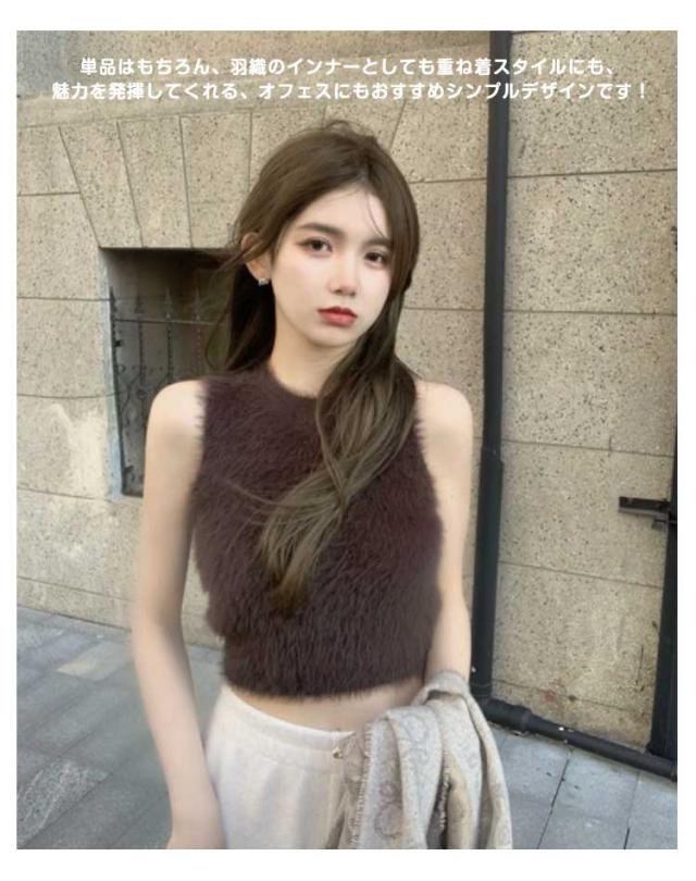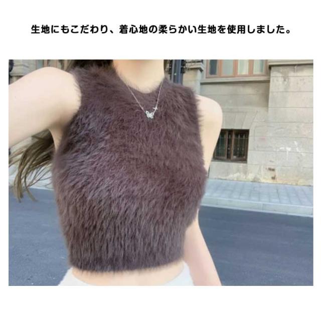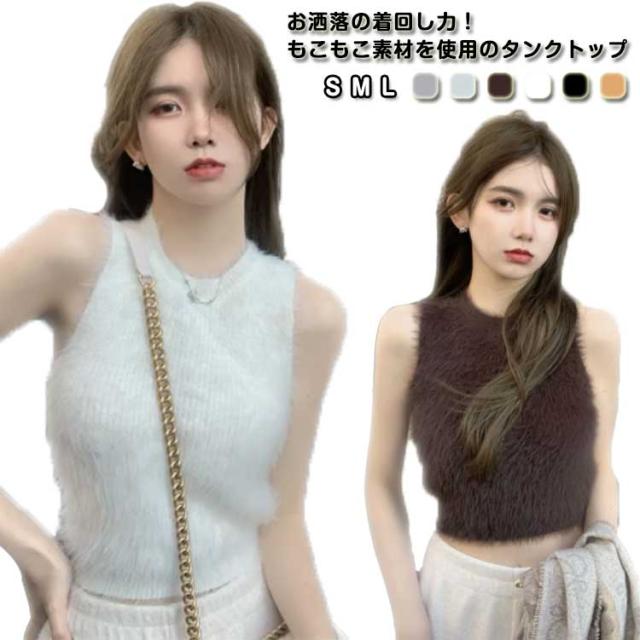 フェイクファー ダンス衣装 可愛い おしゃれ もこもこ トップス ノースリーブ もこもこ レディース モコモコ タンクトップ 重ね着 春 レイヤード へそ出し 袖なし カットソー インナー きれいめ 無地 シンプル キャミソール 秋 ショート丈 おしゃれ かわいい S M L