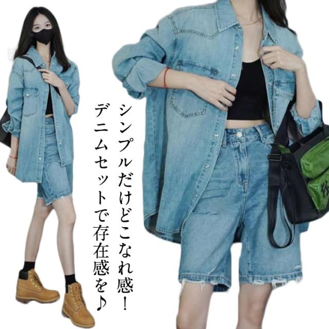 デニムセットアップ デニムシャツ 長袖 シャツ ショートパンツ デニムセットアップ カジュアル 夏服 パンツ レディース デニム ジーンズ 春秋 デニムパンツ カジュアル 大人 可愛い きれいめ お出かけ 通学 旅行 着?せ おしゃれ 大きいサイズ ギフト プレゼント