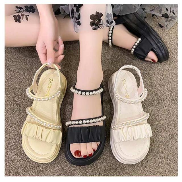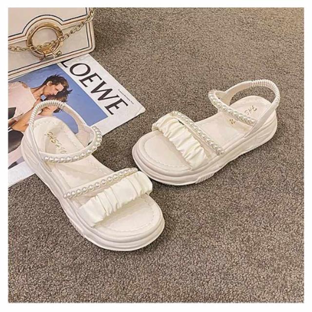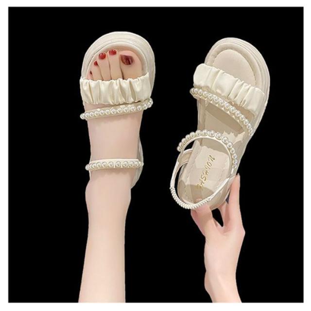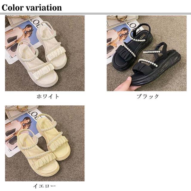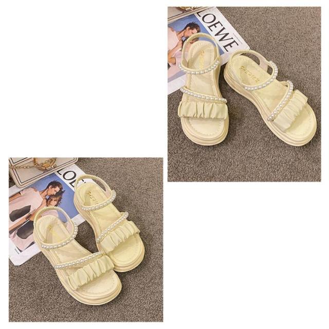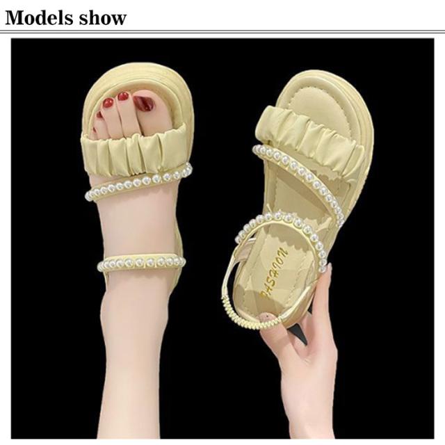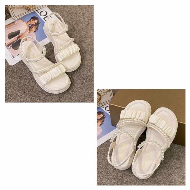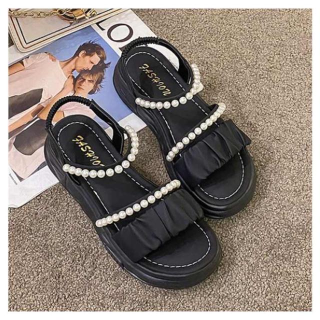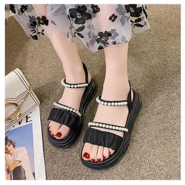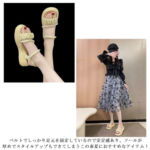 | 足元が華奢に、愛らしく見えるストラップサンダル ベルトでしっかり足元を固定しているので安定感あり、ソールが厚めでスタイルアップもできてしまうこの春夏におすすめなアイテム! 可愛いパールのデザインがアクセントに♪ 着脱が簡単なので好みのフィット感で履ける。 スカート、パンツスタイルにも合わせやすい! オフィスも、結婚式も、普段履きなど色んなシーンでも使える万能な一足です。 | |