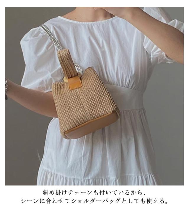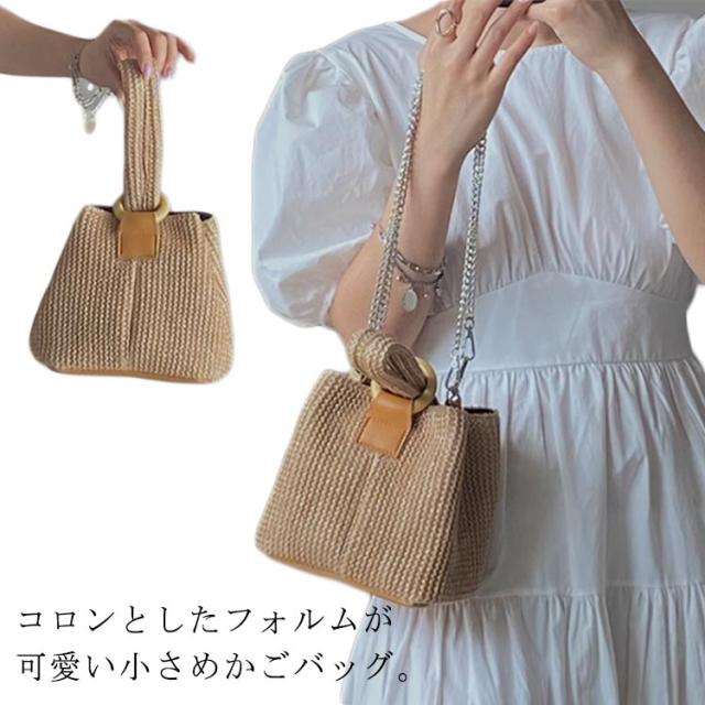 レディース 籠バッグ ストローバッグ カゴバッグ 浴衣バッグ トートバッグ 手提げバッグ ハンドバッグ ミニバッグ ミニトート 小さめ 着物用 ショルダーチェーン付き 可愛い ショルダーチェーン付き ショルダーバッグ かごバッグ