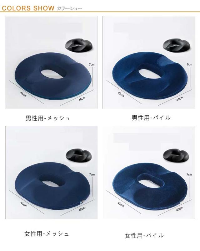 | 【円座クッション】【男性用・女性用】 腰にも座骨が最も圧迫される部分に座骨の形状を考慮した穴を設けることで座骨への負担を軽減で快適な円座クッション。 人間工学に基づいたヘルスケア座布団。後ろの凹んだ所は尾骨を守って、坐骨が改善できる。 長時間の事務作業で腰への負担がかかって、座る姿勢を改善して腰に負担のかからない座り方を身につけることが大切です。 中央に穴があり、通気エリアを確保するだけでなく、腰を安定させ、体重を分散でき、長時間の着座も快適に。 カバーは着脱式のため、洗濯機で簡単に洗うことが可能。 | |