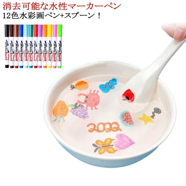 水彩画ペン フローティングペン 水落書きペン スプーン付 水フローティングペン ホワイトボードマーカー 12色 白板ペン 魔法の水絵ペン 魔法の落書き 落書き描画ペン 水彩画ペン マジックウォーターペン