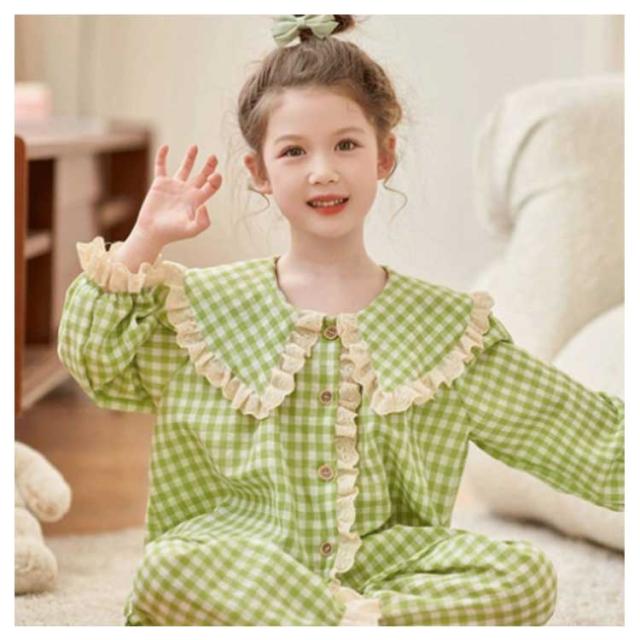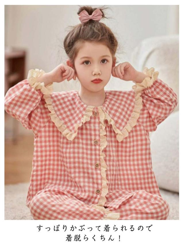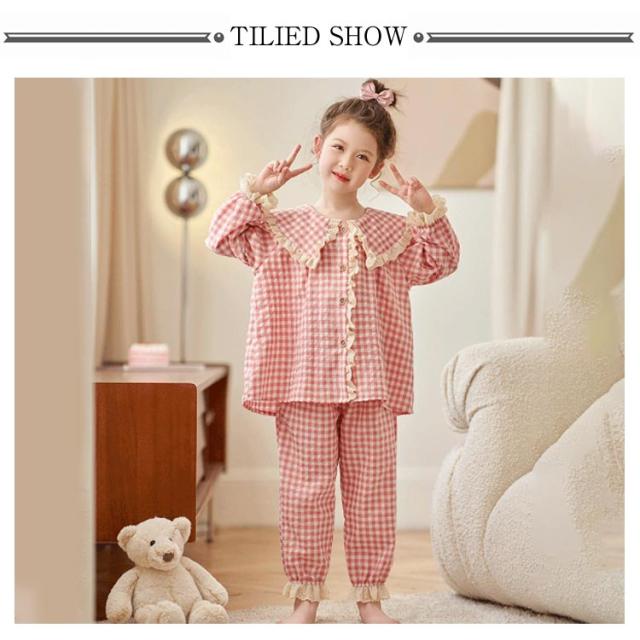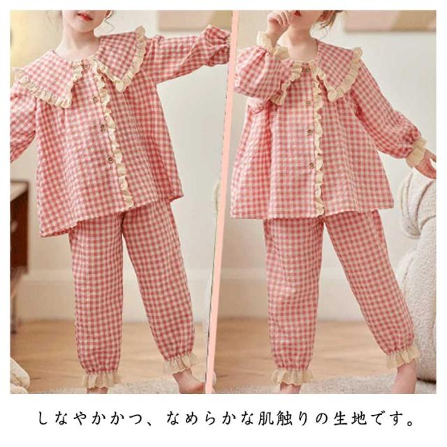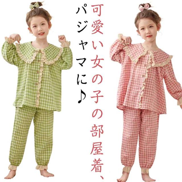 春 パジャマ 秋 キッズ ナイトウェア 部屋着 ルームウェア 子供服 チェック柄 セット 上下 肌触りがいい 長ズボン かわいい 快適 ゆったり 肌着 長袖 キッズ 薄手 寝間着 お姫様 100 110 120 130 140 150
