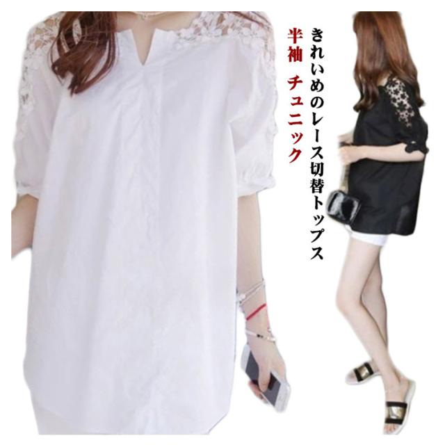 春 切り替え 半袖 レディース シャツ 上品 チュニック 透け感 カジュアル きれいめ おしゃれ カットソー tシャツ 肩出し 夏 トップス ブラウス マタニティ 清楚 ゆったり Tシャツ 肩見せ レース 大きいサイズ 無地 可愛い