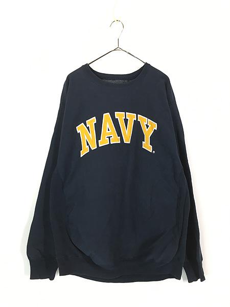 古着 00s 「NAVY」 ミリタリー リバース タイプ ミリタリー ヘビー スウェット トレーナー XL