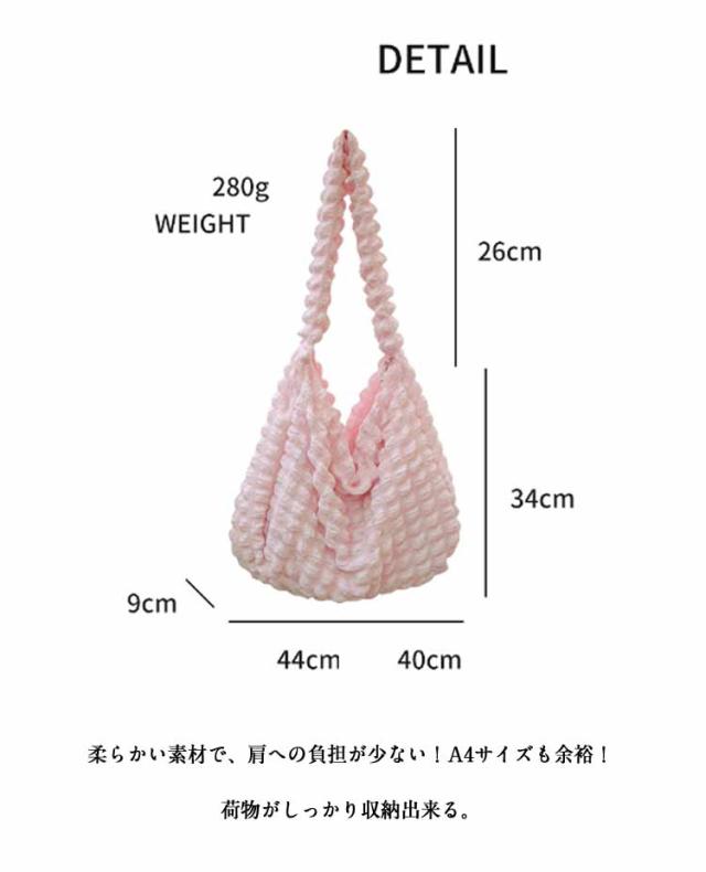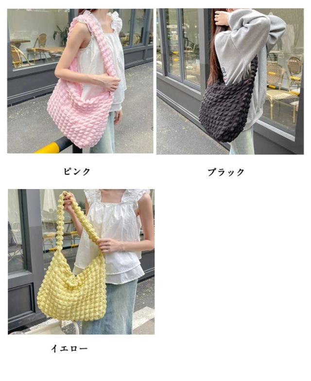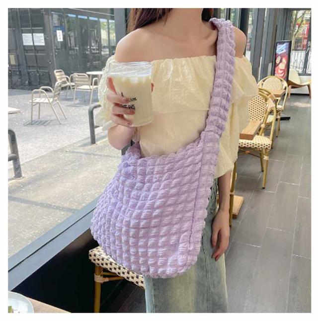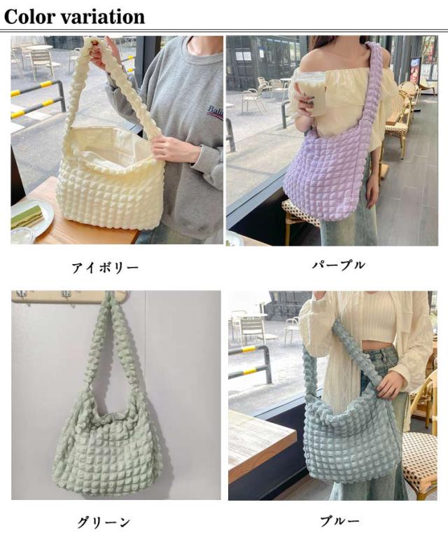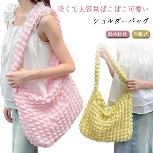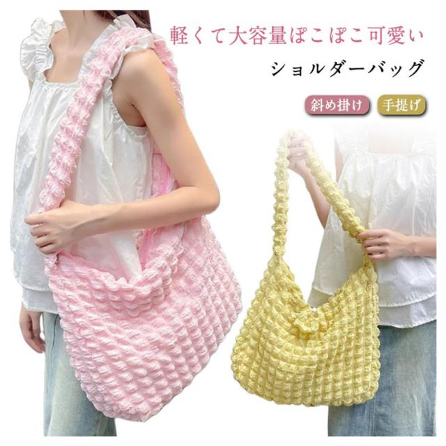 | 軽くて大容量ぽこぽこ可愛いショルダーバッグ ポコポコしたポップコーンバッグはまるでのように柔らかで肌触りよ、季節問わず通年使えるシーズンレスなバッグです。 柔らかい素材で、肩への負担が少ない!A4サイズも余裕!荷物がしっかり収納出来る。 内ポケット付きで小物の収納にも便利♪ 通勤や通学バッグ、マザーズバッグ、オタ活など様々な場面で大活躍。 | |