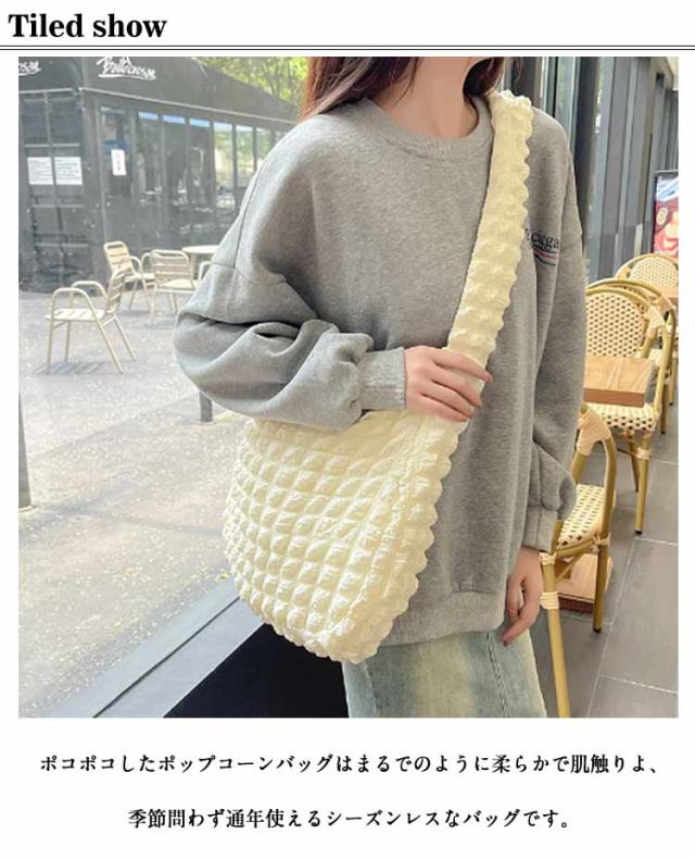 レディース トートバッグ 斜め掛け 斜めかけバッグ ふわふわ 大容量 バッグ 韓国 可愛い 可愛い ポップコーンバッグ ショルダーバッグ 縦型 エコバッグ 肩掛けバッグ ぽこぽこ A4 シャーリングバッグ おしゃれ ポコポコバッグ