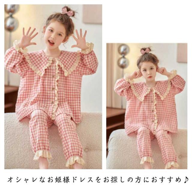 長袖 春 キッズ 寝間着 ナイトウェア ゆったり 女の子 キッズ 秋 長ズボン ルームウェア セット 上下 かわいい 子供服 部屋着 チェック柄 肌着 肌触りがいい 薄手 快適 お姫様 100 110 120 130 140 150