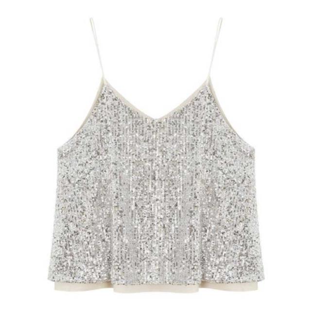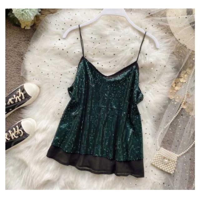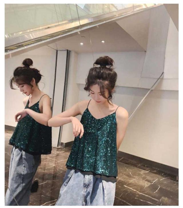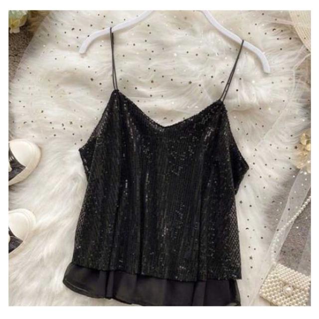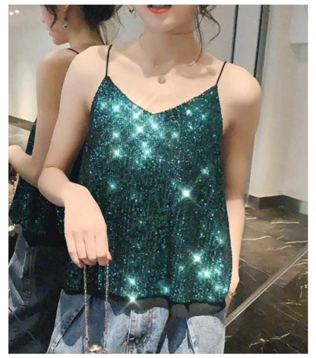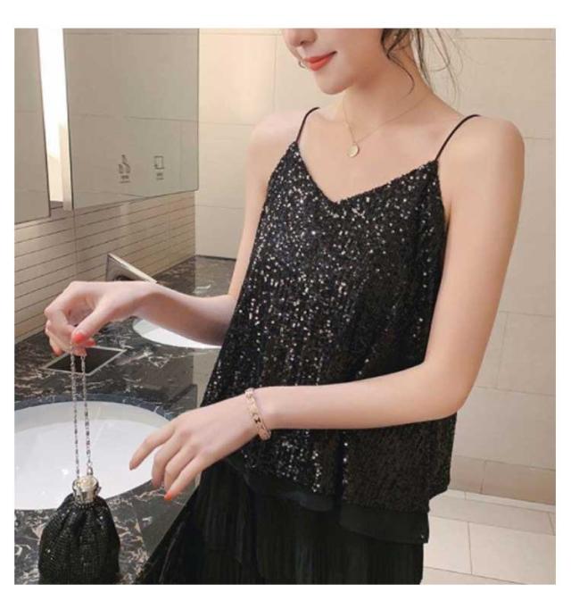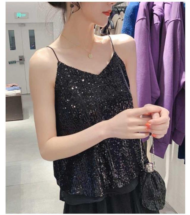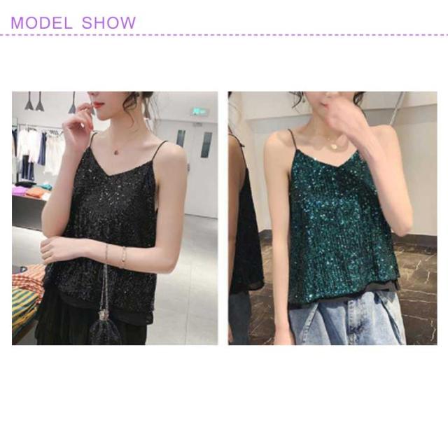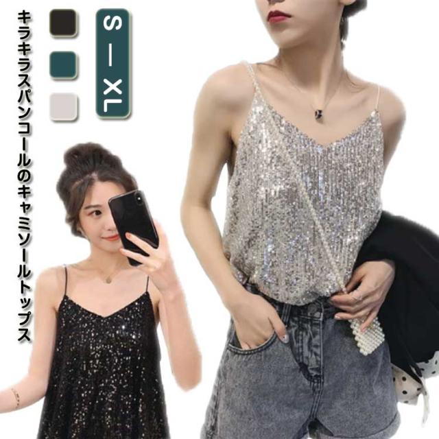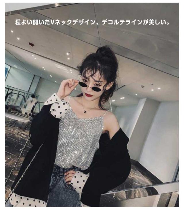 | キラキラスパンコールのキャミソールトップス 全体がスパンコールでキラキラ可愛いデザイン。華やかにお出かけを楽しくしてくれます。 程よい開いたVネックデザイン、デコルテラインが美しい。 裏地付き、快適な着心地を実現する。 インナーに、重ね着に、色々使えます。 普段着はもちろん、コスチュームや衣装・クラブ・ダンス・発表会・パーティーにピッタリ! | |