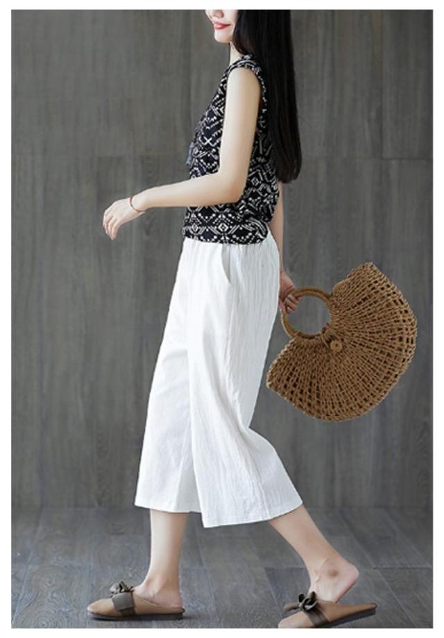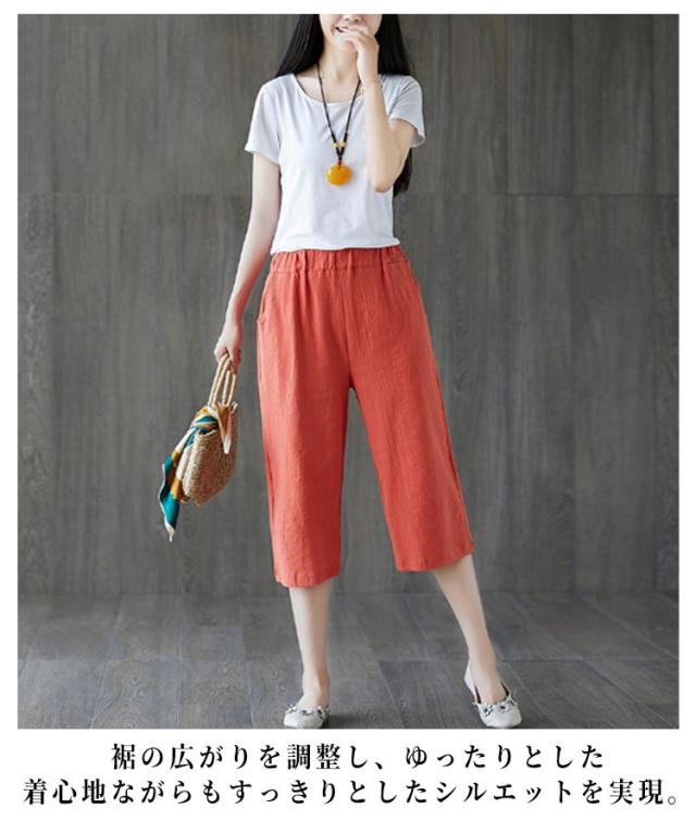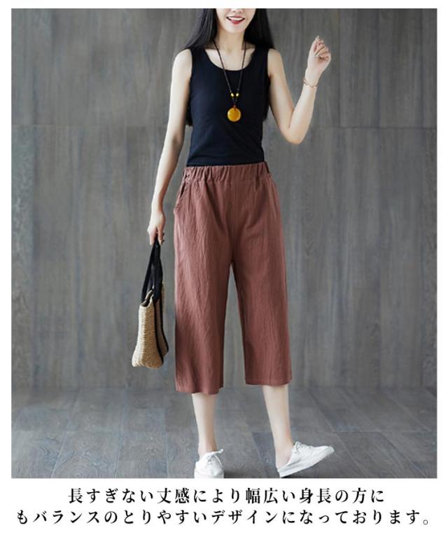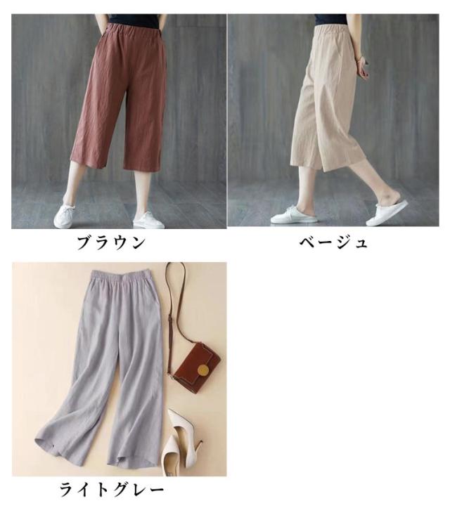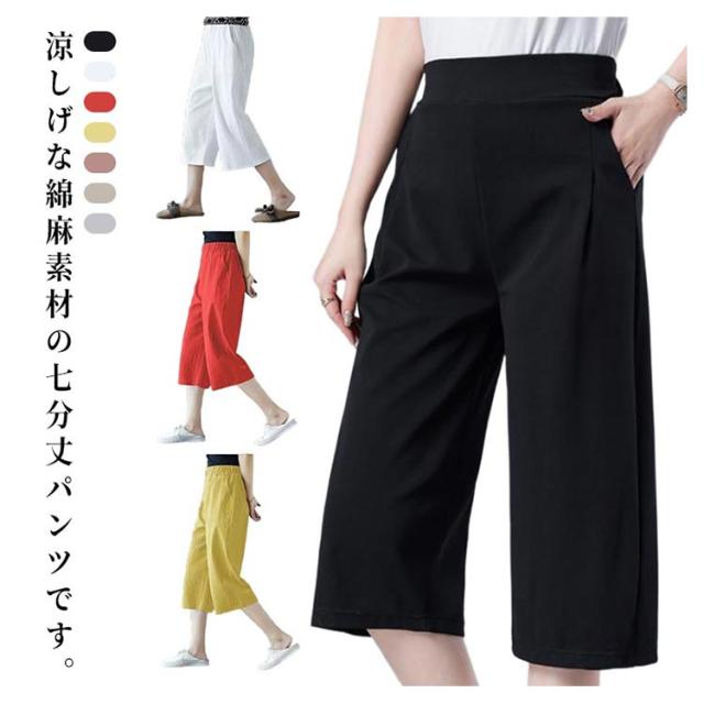 セミワイドパンツ イージーパンツ セミワイドパンツ 綿麻 麻混 レディース 7分丈 涼しい 美脚パンツ ゆったり ウエストゴム 春 夏 体型カバー クロップドパンツ 大きいサイズ 重ね着 ストレートパンツ ズボン 大きいサイズ ボトムス