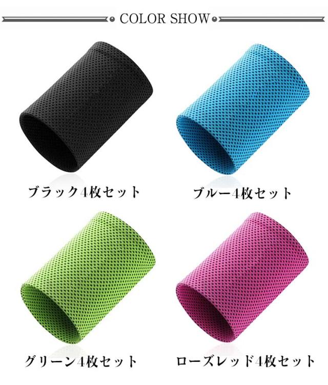 ショート 夏用 野球 汗吸収 ストレッチ レディース 接触冷感 メンズ 4枚セット アイスバンド 冷却バンド ひんやり 冷感 速乾 4枚セット リストバンド 汗拭き 通気性 スポーツ 野球 ランニング 筋トレ ゴルフ