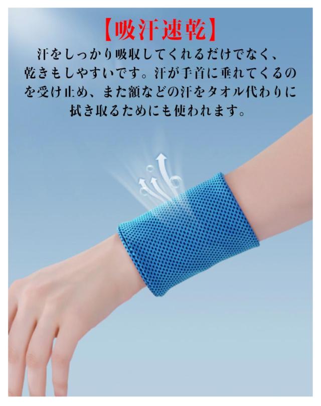 | 4枚セット 【冷感】リストバンドはアイスシルク材質を採用して、肌と接触した瞬間に温度を3−5度を下がる涼しい冷感、汗を吸収しやすく、清涼感超群です。 【通気性】メッシュ素材を使用しているのは、空気と触れる部分を多くして、熱を発散させやすいです。通気性が拔群です。 【吸汗速乾】汗をしっかり吸収してくれるだけでなく、乾きもしやすいです。汗が手首に垂れてくるのを受け止め、また額などの汗をタオル代わりに拭き取るためにも使われます。 【多用途】敏感肌の方は腕時計のしたにつけます。テニス、野球やバスケなど球技はもちろん、ランニングからヨガまで幅広いスポーツシーンで使えます。 使い方:水に濡らして振るだけで! | |