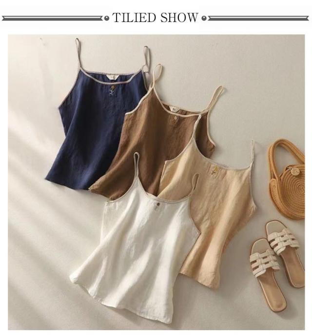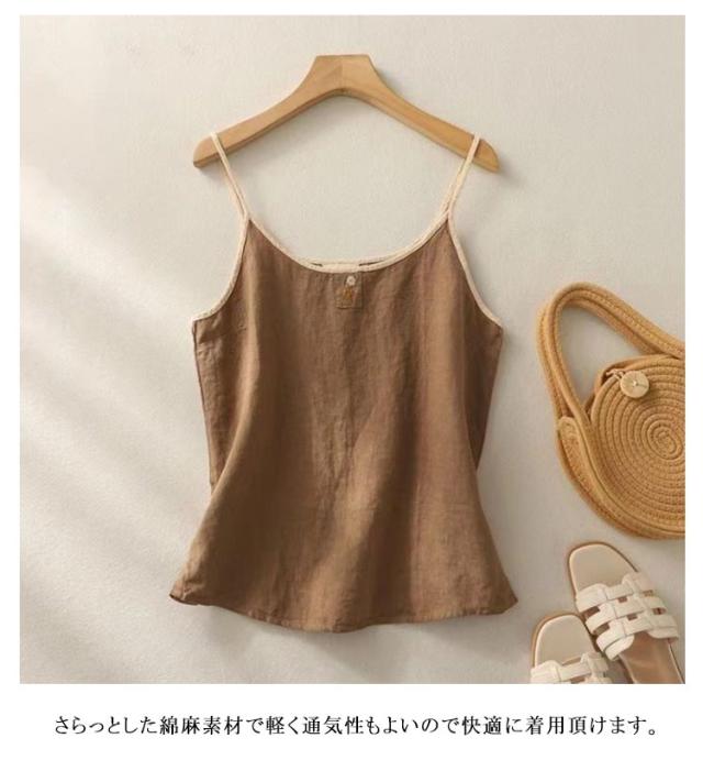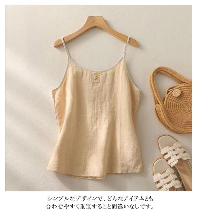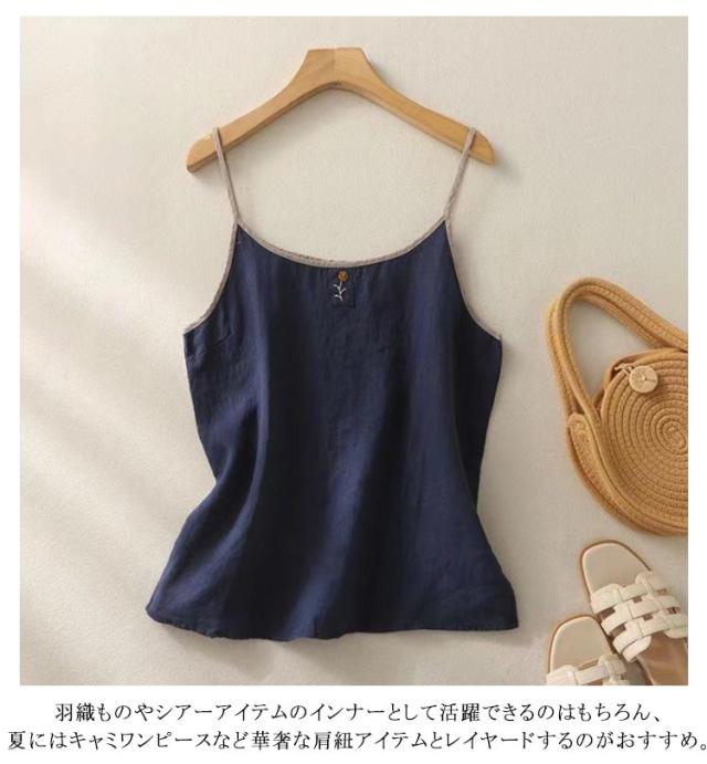 シンプル 春 レディース リネン混 重ね着 トップス 刺繍 リネン混 レイヤード 花柄 サマーキャミソール 綿麻 サマータンク キャミソール インナー 涼しい 着回し 薄手 通気性 快適 肌着 下着 麻混 ナチュラル カジュアル 可愛い 大きいサイズ 20代 30代
