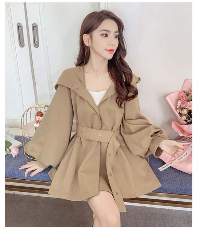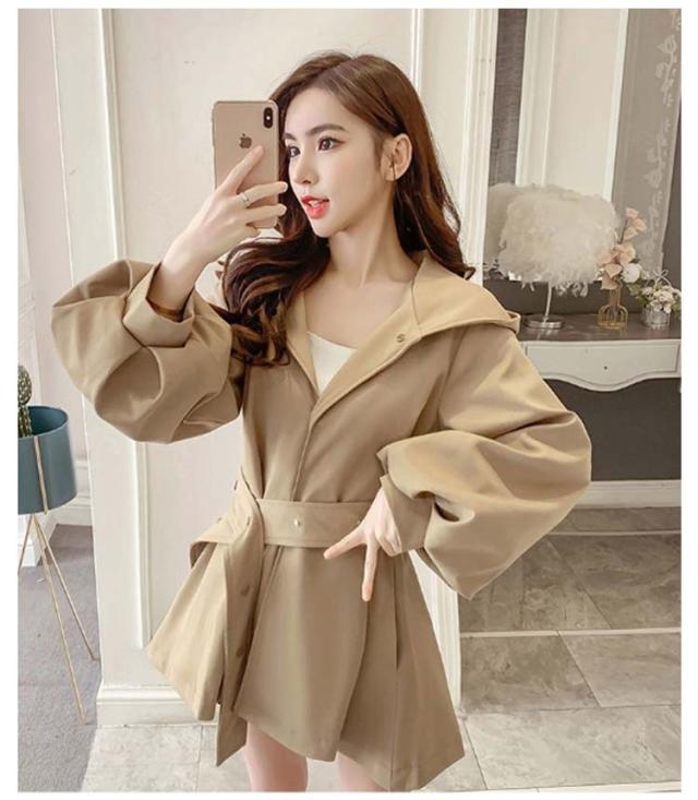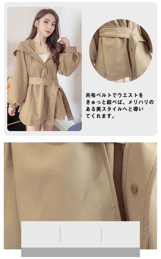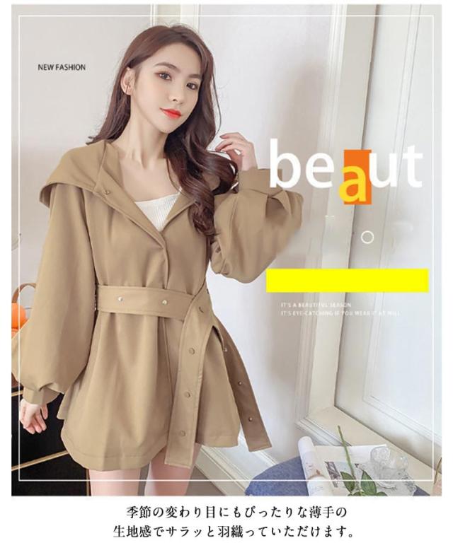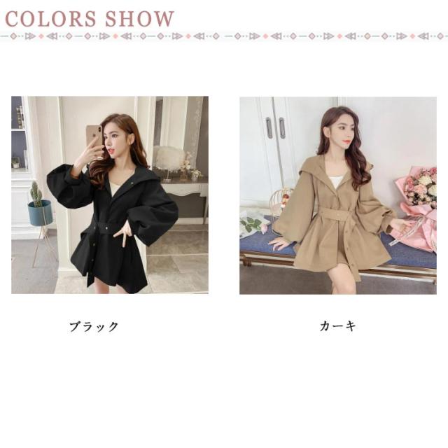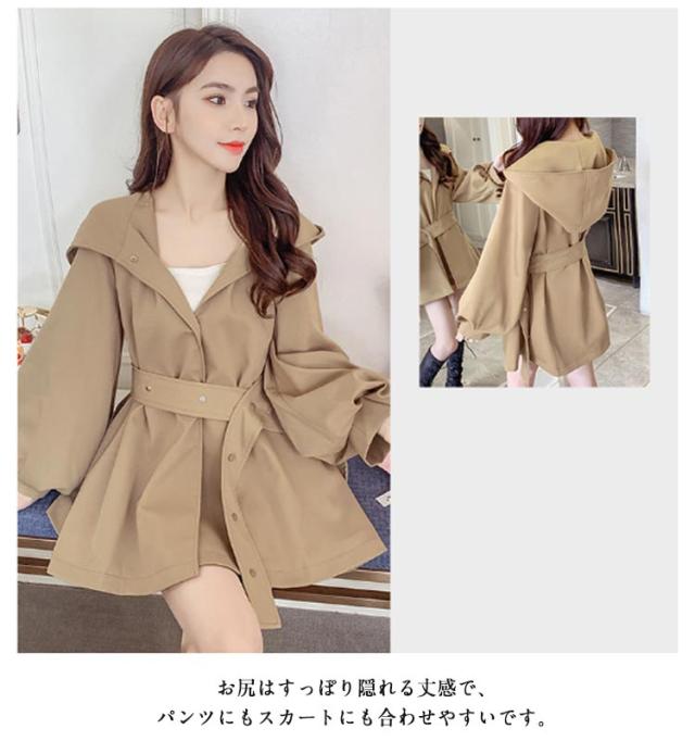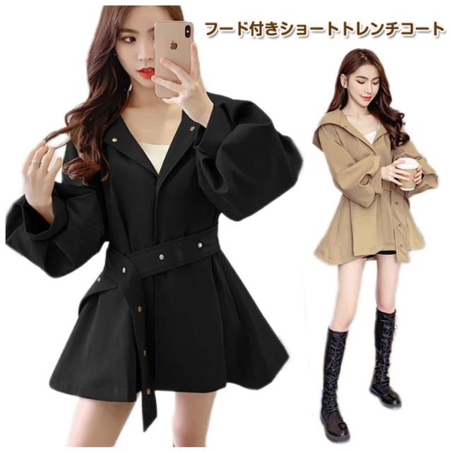 ショートトレンチコート フード付き ボリュームスリーブ Aライン トレンチコート アウター コート ジャケット レディース ショートコート おしゃれ カジュアル オフィス 通勤 通学 羽織り 流行 春 秋