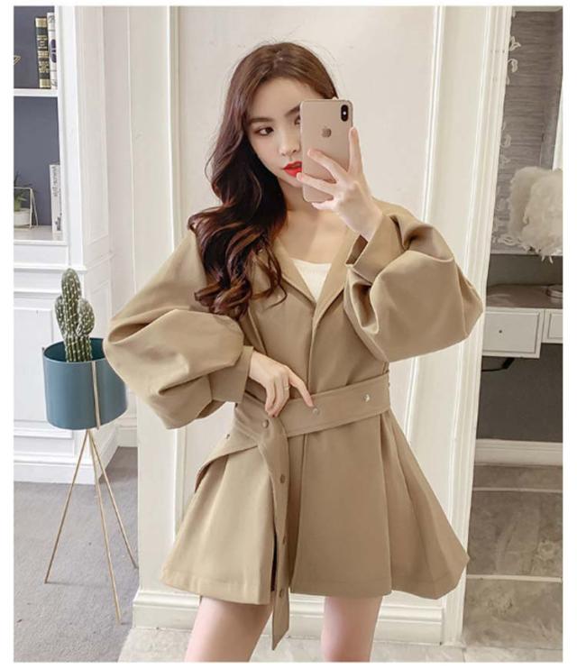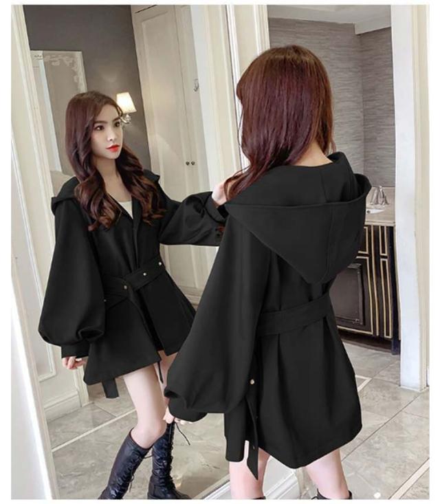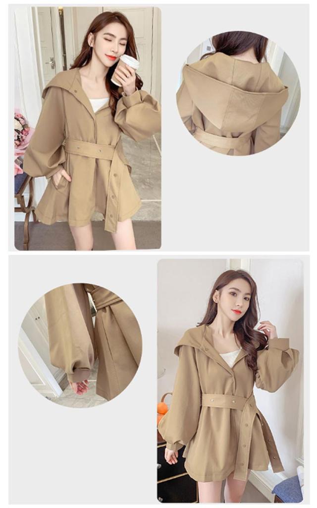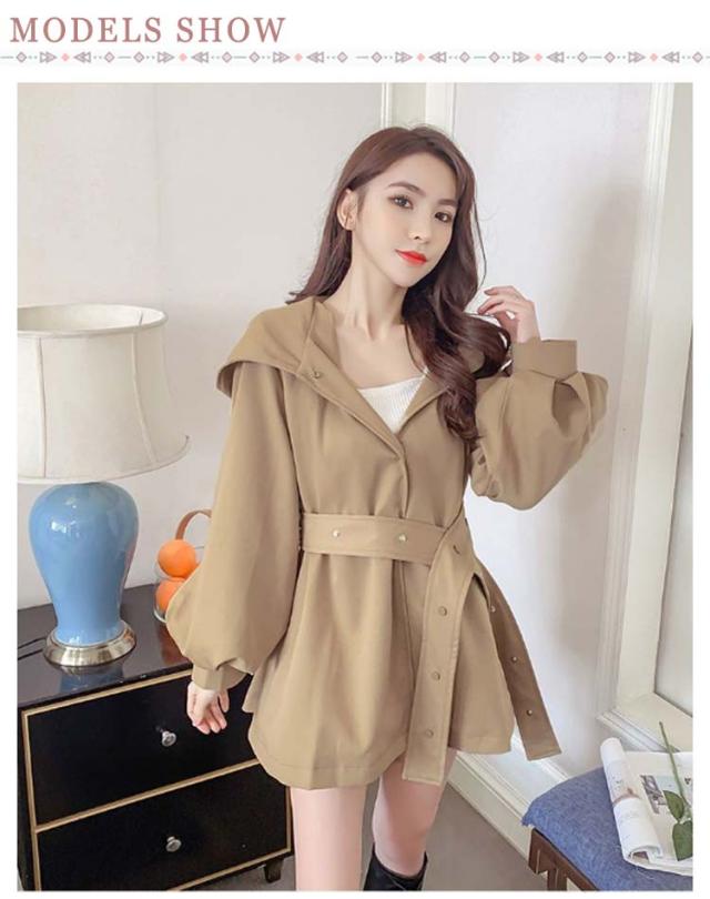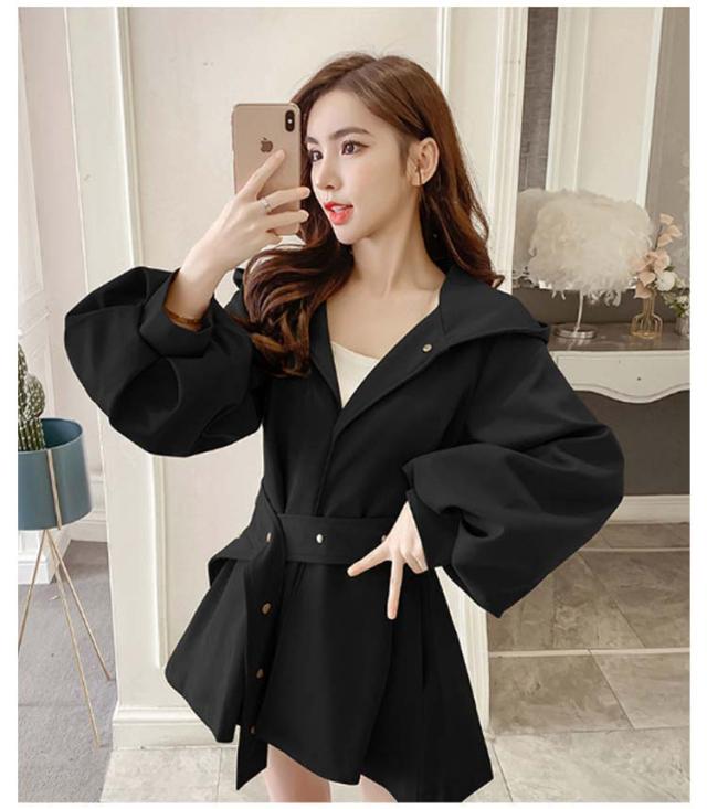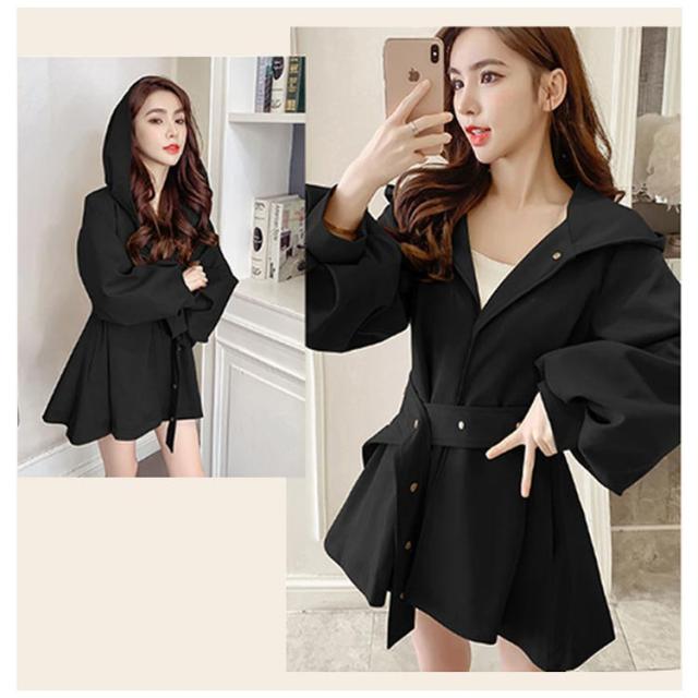 ショートトレンチコート フード付き ボリュームスリーブ Aライン トレンチコート アウター コート ジャケット レディース ショートコート おしゃれ カジュアル オフィス 通勤 通学 羽織り 流行 春 秋