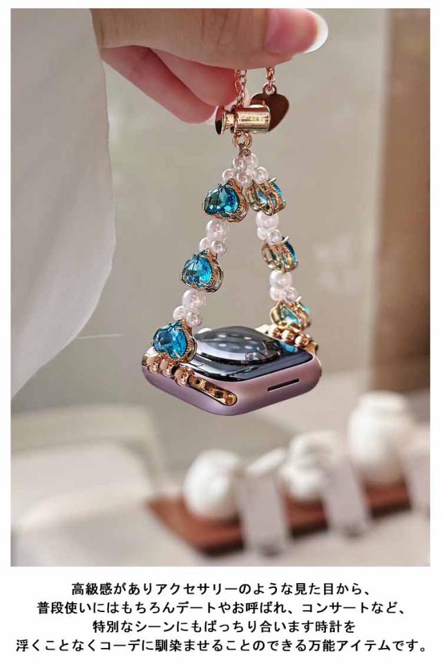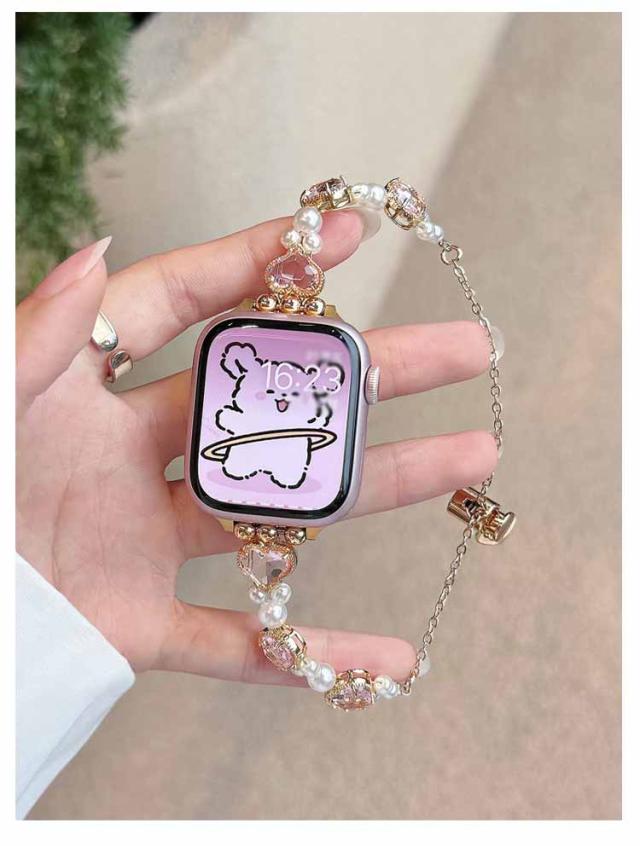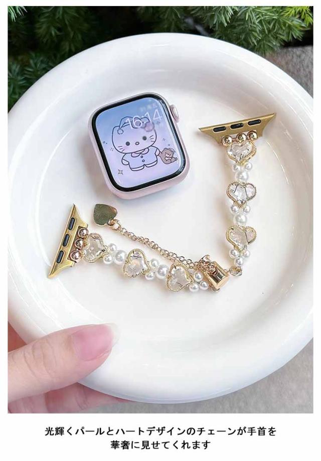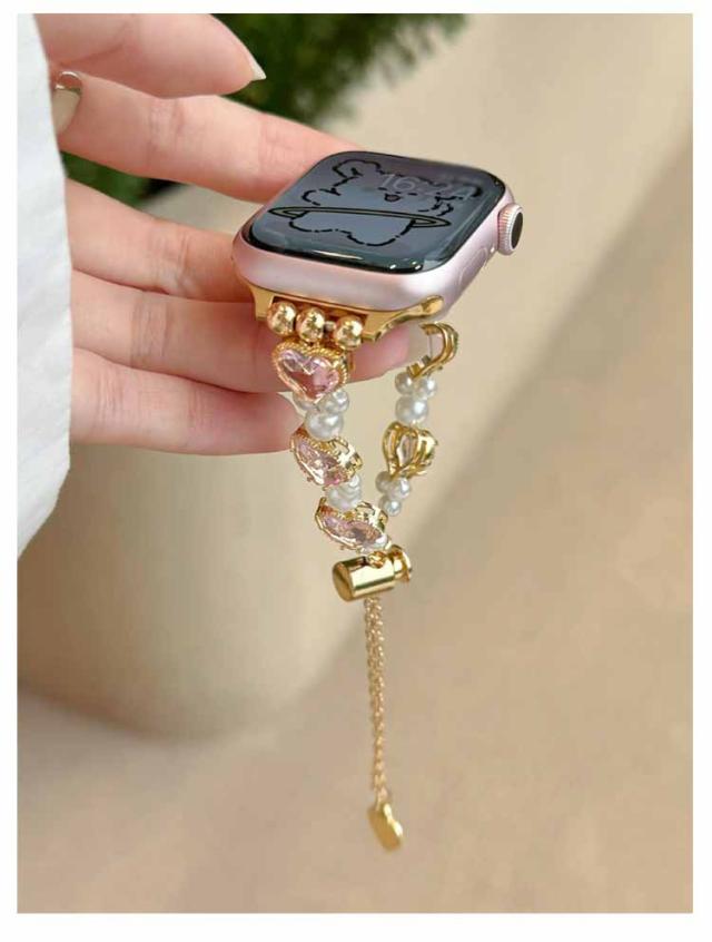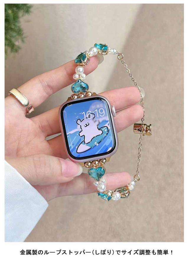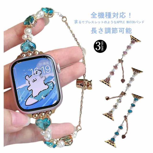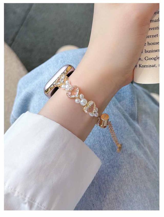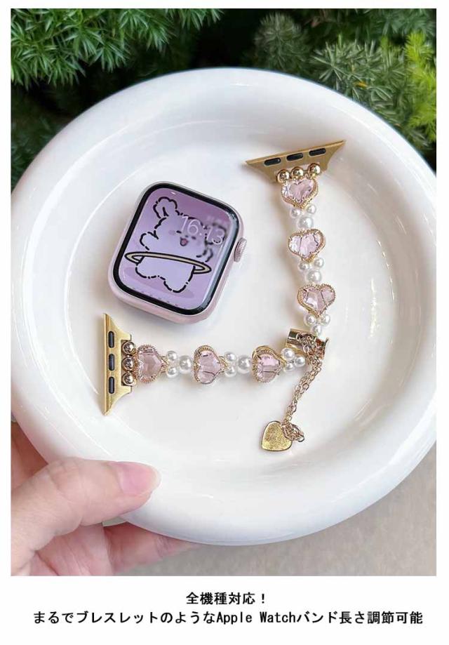 アップルウォッチ バンド おしゃれ レディース 女性 ブレスレット風 パール ハート Apple watch バンド 44mm 40mm 38mm 42mm 41mm 45mm 49mm apple watchベルト apple watch Series Ultra 9 8 7 6 5 4 3 2 1 SE 長さ調節可 耐衝撃 高級感 送料無料