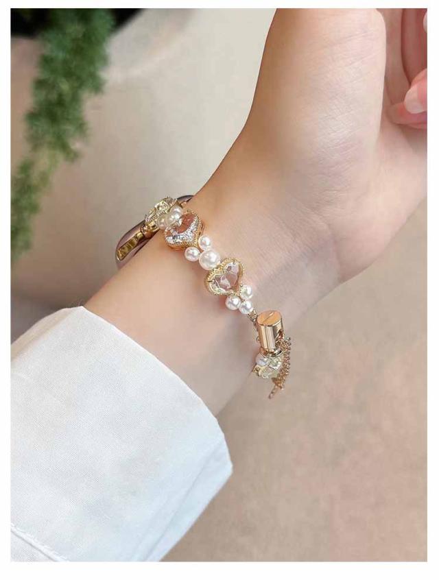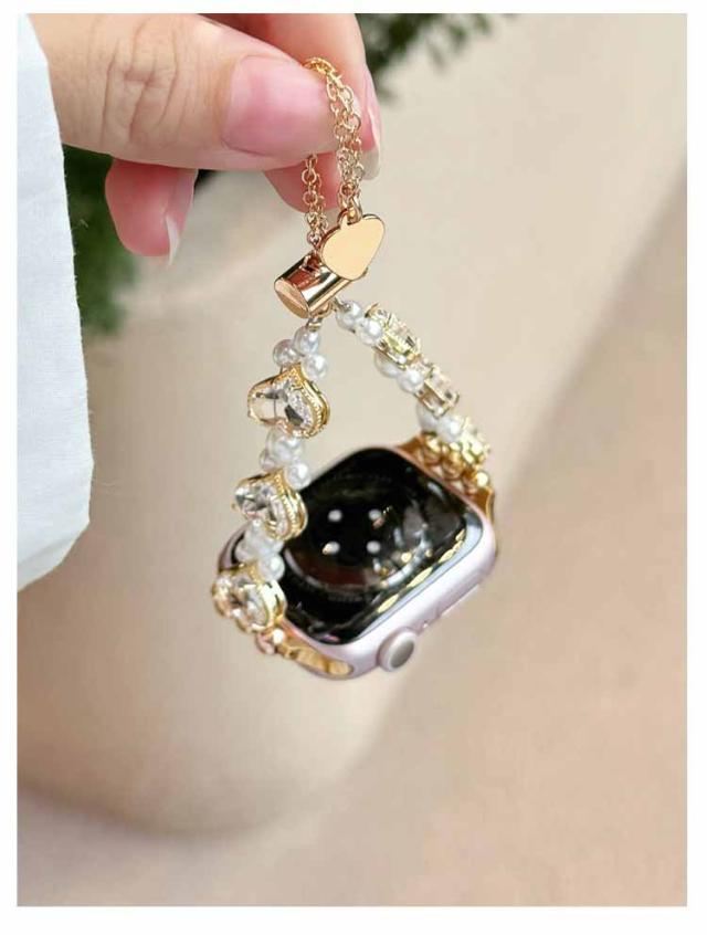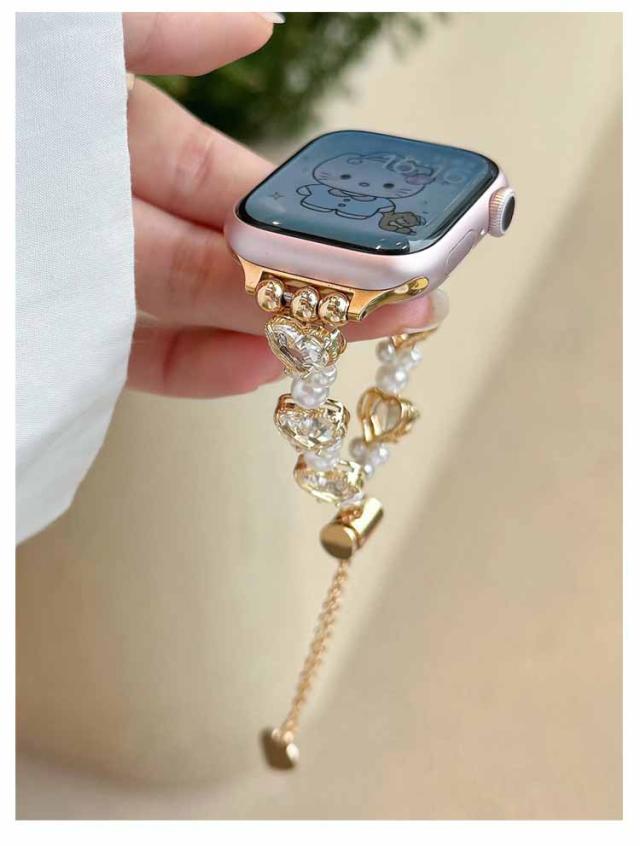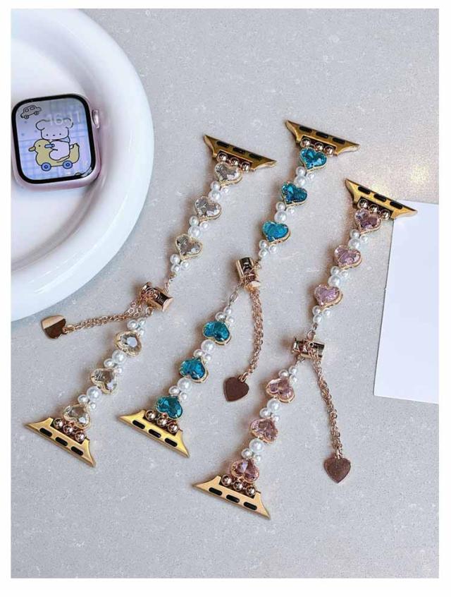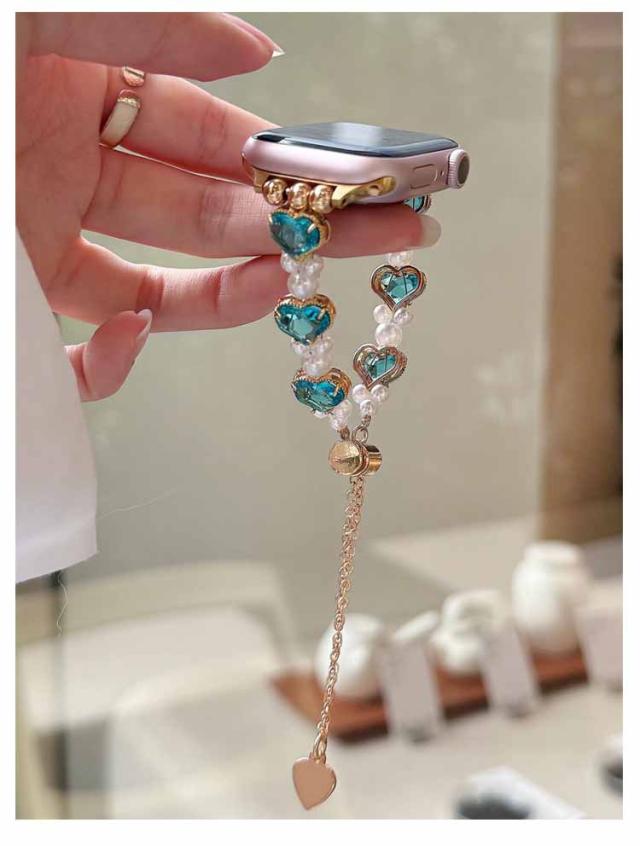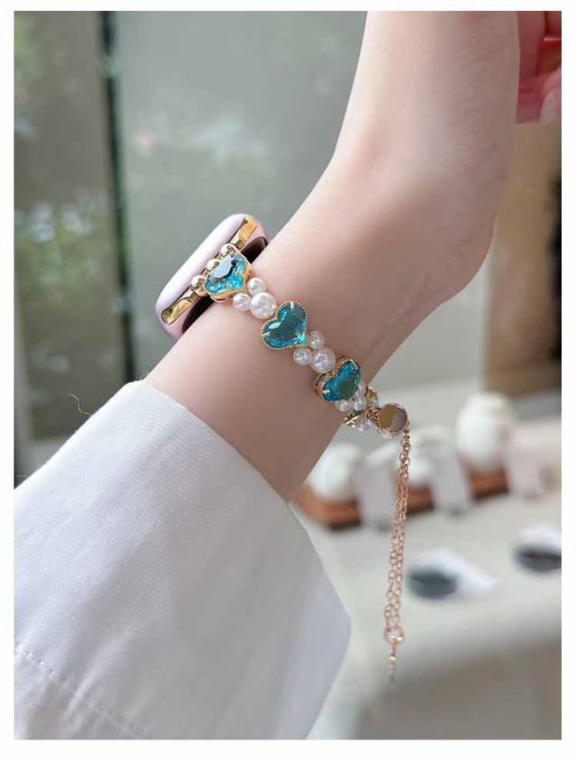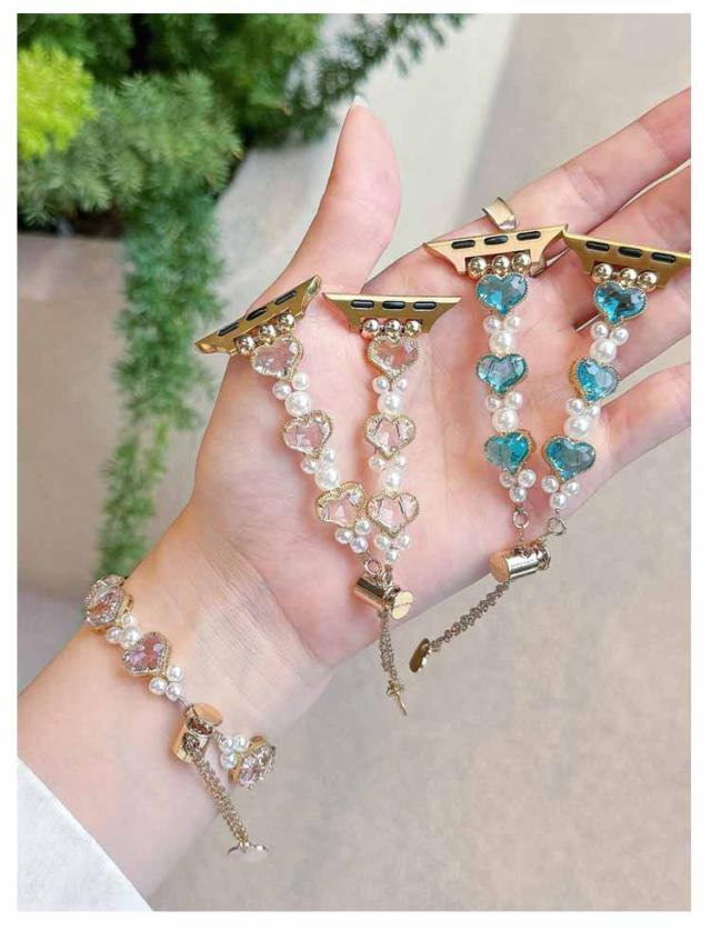 アップルウォッチ バンド おしゃれ レディース 女性 ブレスレット風 パール ハート Apple watch バンド 44mm 40mm 38mm 42mm 41mm 45mm 49mm apple watchベルト apple watch Series Ultra 9 8 7 6 5 4 3 2 1 SE 長さ調節可 耐衝撃 高級感 送料無料