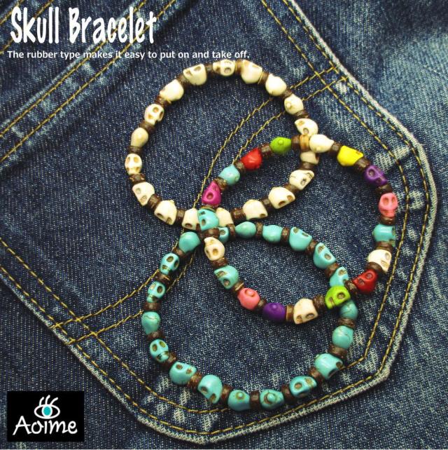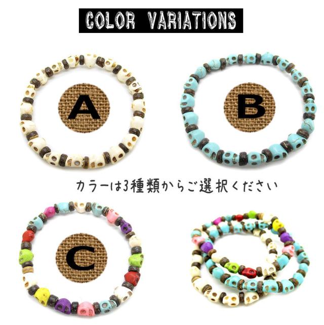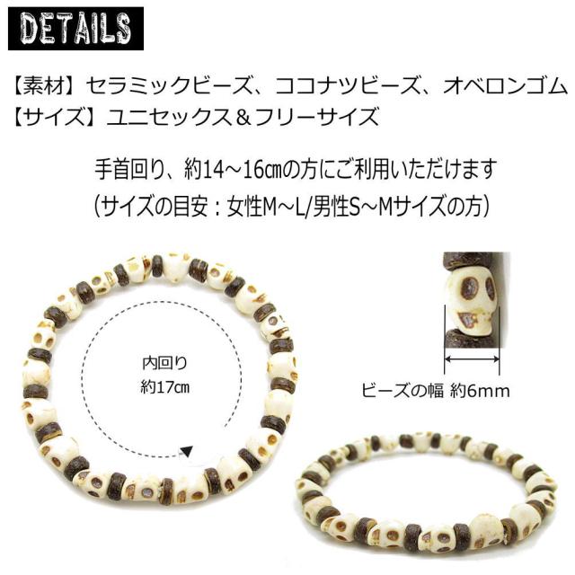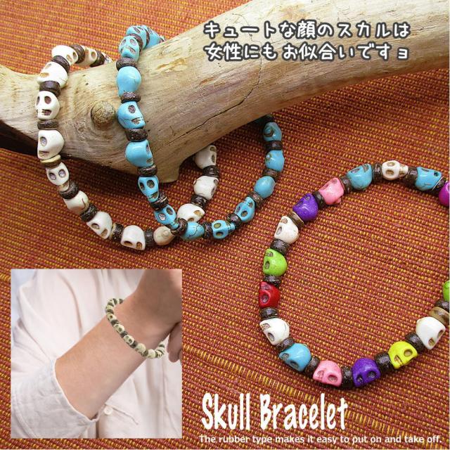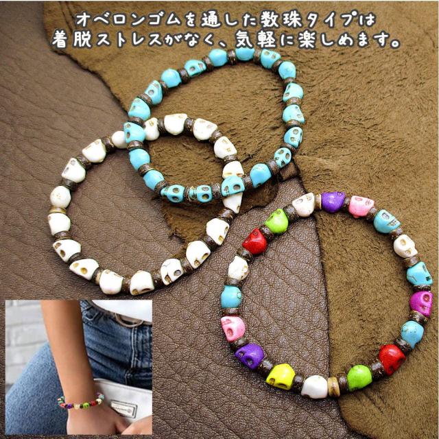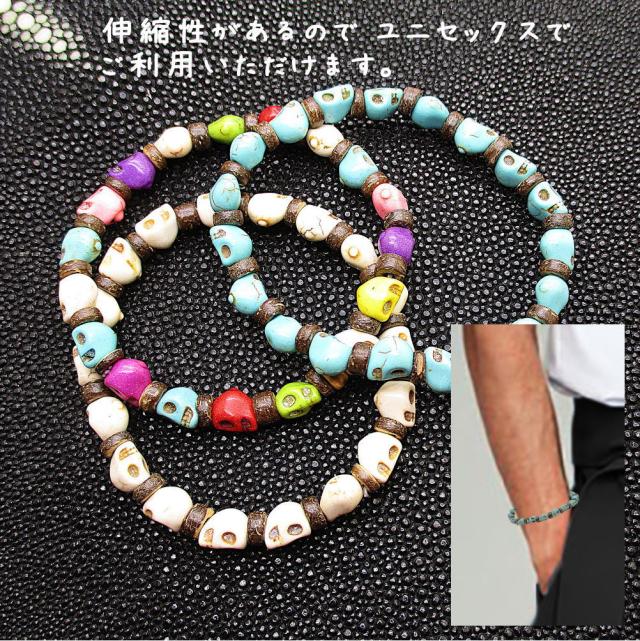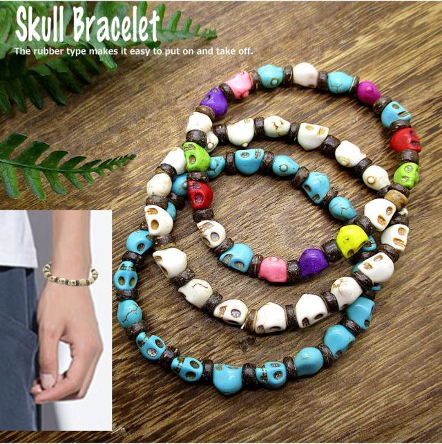 スカル ドクロ 骸骨 ブレスレット メンズ レディース ユニセックス フリーサイズ 伸縮 ゴムブレスレット ストレッチ ブレス 数珠 着脱簡単 ビーズ アクセサリー 3-1007