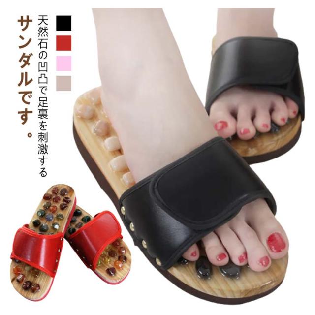 健康サンダル レディース メンズ 足ツボ スリッパ 足つぼ 室内靴 ルームシューズ ツボ押し 足裏 サイズ調節可能 マッサージ 男女兼用 天然石 滑り止め デスクワーク オフィス 事務用 室内用 送料無料