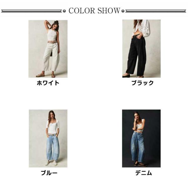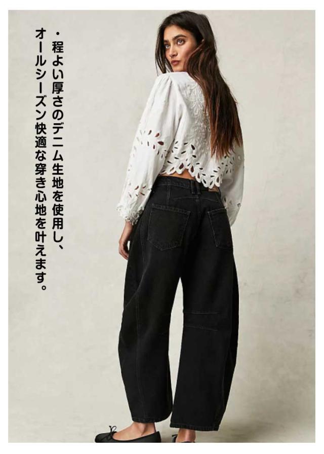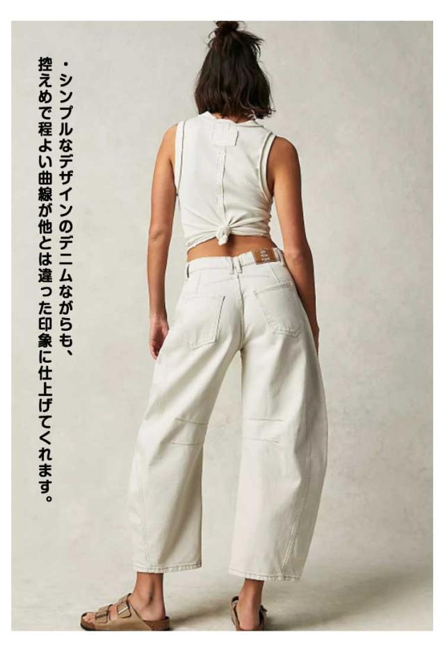 カーブ デニムパンツ レディース カーブデニム ジーンズ ワイドデニム ボトムス パンツ Gパン ジーパン コクーン カーブシルエット 白 黒
