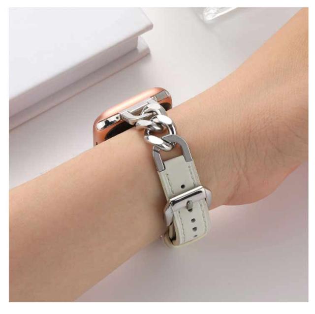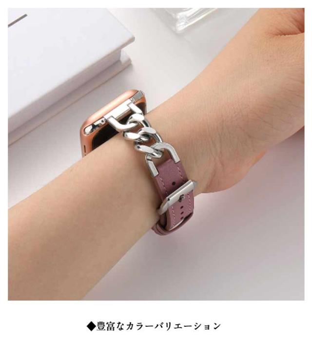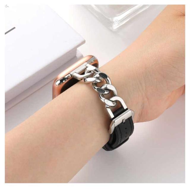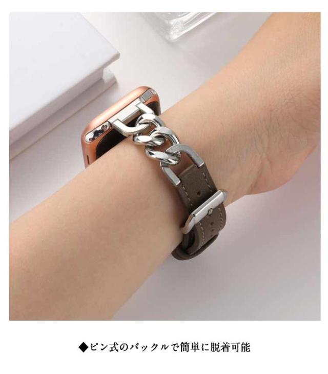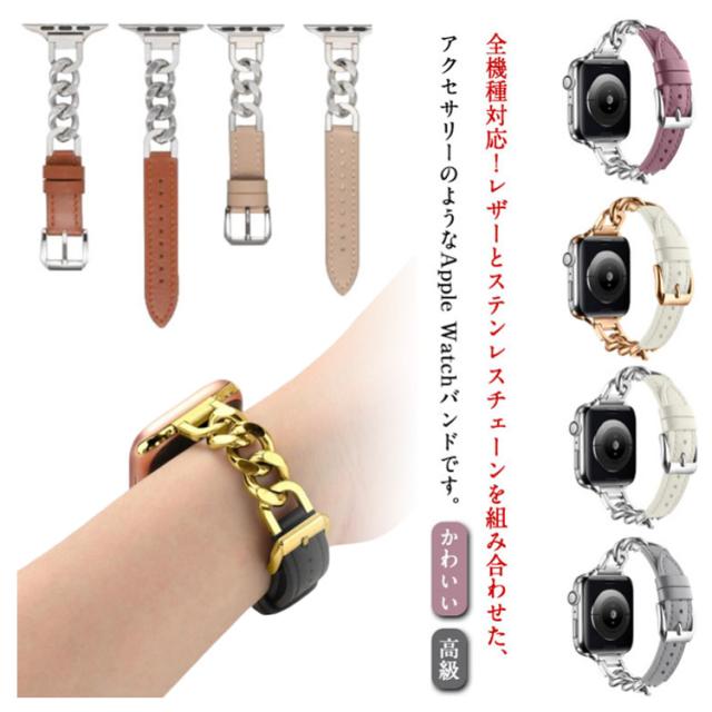 Apple Watch バンド 本革 レザー ステンレス チェーン アップルウォッチバンド Apple Watch ベルト 高級 レディース メンズ 替えバンド 革 シルバー ゴールド かわいい おしゃれ 49mm 45mm 44mm 42mm 41mm 40mm 38mm series 9 8 ultra 7 SE2 6 5 4 3 2 1 対応 上品