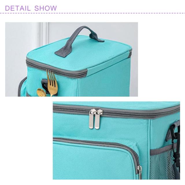 | 【コンパクトでたっぷり収納】持ち運びにぴったりな10Lサイズのソフトクーラーバッグです。 折りたたみ収納も出来るコンパクト設計! 【安心の保冷力・保温力】生地は3層構造でアルミのクーラーバッグなどに比べ、抜群の保冷力・保温力があります。三層構造の外生地には丈夫な600Dオックスフォード生地、芯材には保冷力の高い5mm発泡ポリエチレン、内部生地には防水性EVAフィルムを使用しているので食材による汚れやペットボトルの結露なども拭くだけで簡単にお手入れが可能です。 【外ポケットも充実】外ポケットは前側と左右側の3箇所。前側はチャック付きでスマートフォンや財布、キーケース等の収納にも適しています。左右のポケットはメッシュ製で入れ口は伸縮するので、ペットボトルやお箸・スプーン・フォーク等のカトラリー類、またお皿やコップなどの食器類等をたっぷり収納する事も可能です。 【様々なシーンで活躍】肩掛けも出来て身軽に持ち運びが可能で、大きくて重いクーラーボックスの代わりに、ちょっとした外出の機会に気軽にご使用が頂けます。公園遊び・ピクニック・アウトドア・お花見・BBQ・釣り・スポーツ・試合観戦・お買い物・ランチバッグ等、様々なシーンでご使用が可能です。 | |