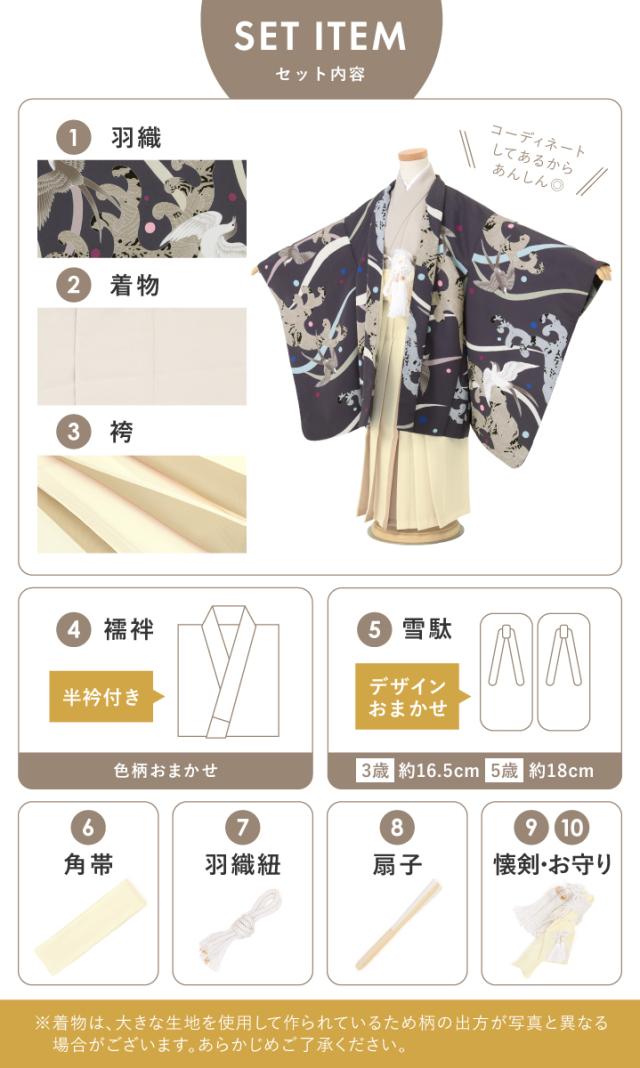 七五三 着物 3歳 5歳 販売 三歳 五歳 袴セット 羽織 半襦袢 袴帯 羽織紐 扇子 懐剣 お守り袋 雪駄 セット 男の子 和柄 鳥 荒波 露芝 ブルーグレー ベージュ 白 男児 送料無料