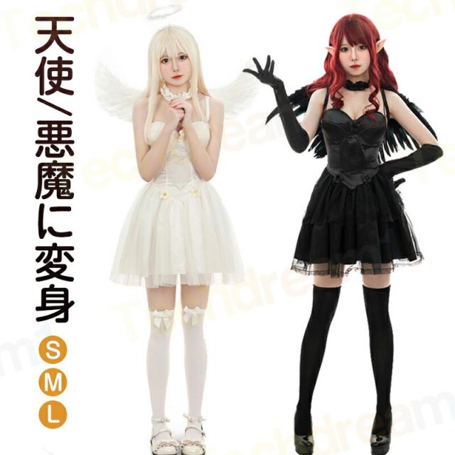 ハロウィン コスプレ 天使 デビル エンジェル 悪魔 ワンピース 衣装 仮装 コスチューム 大人 レディース 羽 羽根 可愛い セクシー ハロウィン衣装 ハロウィーン ハロウィンコスチューム 小悪魔 コスプレ衣装 文化祭 結婚式 天使衣装 スカート イベント パーティー 女性用