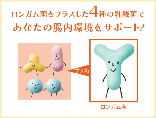 | 原材料 | 成分 9錠中 ビフィダム菌…9mg ロンガム菌…9mg フェーカリス菌…18mg アシドフィルス菌…18mg 添加物:トウモロコシデンプン、デキストリン、乳糖水和物、沈降炭酸カルシウム、アメ粉、白糖、タルク、ステアリン酸マグネシウム、フラクトオリゴ糖 |
