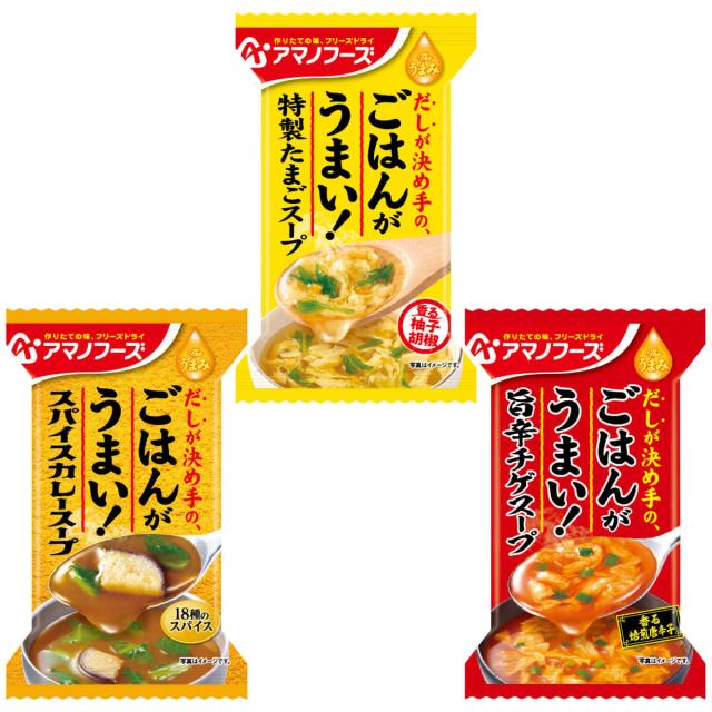 アマノフーズ フリーズドライ Theうまみ ごはん がうまい スープ 3種24食 詰め合わせ セット 【 送料無料 北海道沖縄以外】 インスタントスープ 即席スープ たまご カレー チゲ ご飯のお供 食品 備蓄 保存食 2026 バレンタイン ホワイトデー