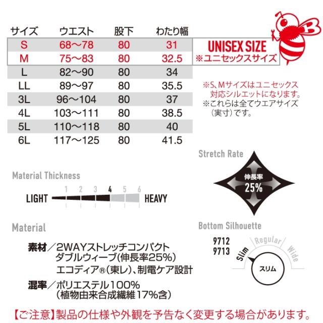 バートル BURTLE 作業服 作業着 作業ズボン 9713 パンツ 4L 作業服 おしゃれ JIS適合制電
