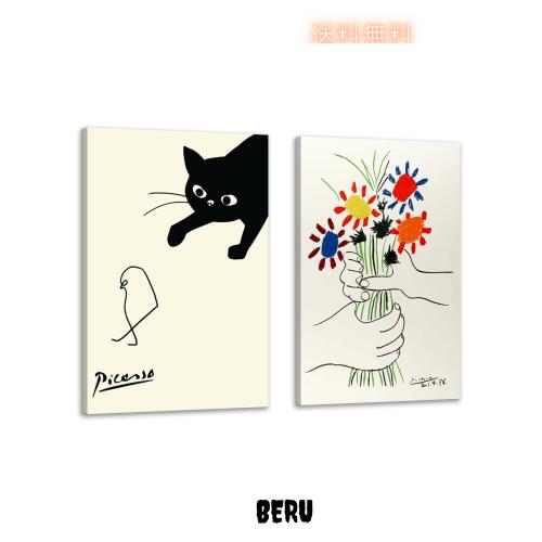 アート ポスター ピカソ 鳥を捕まえる猫 ネコとひよこ 絵画 ピカソ 猫 動物 壁画 パネル 飾り絵 部屋飾り 壁掛け 玄関 木枠付きの完成品(