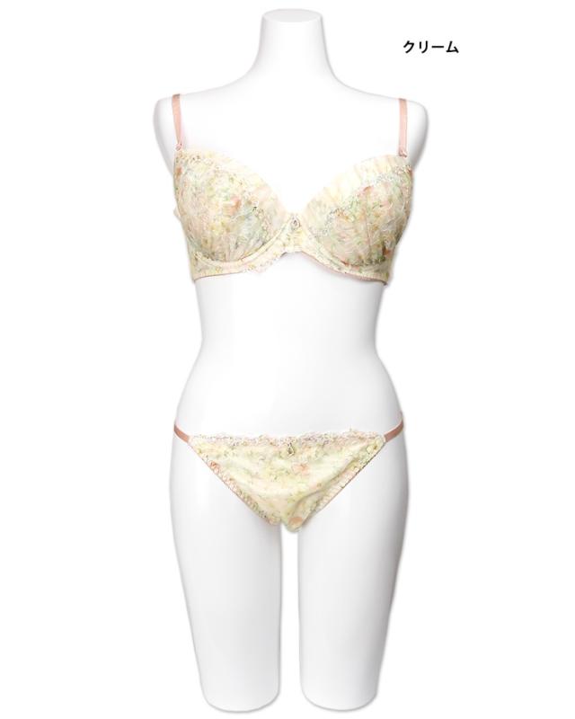 【大きいサイズ】フラワーレース ブラジャー ショーツ セット 下着(J1231) パープル クリーム C D E F 75 80 85 90 95 No.bs2380