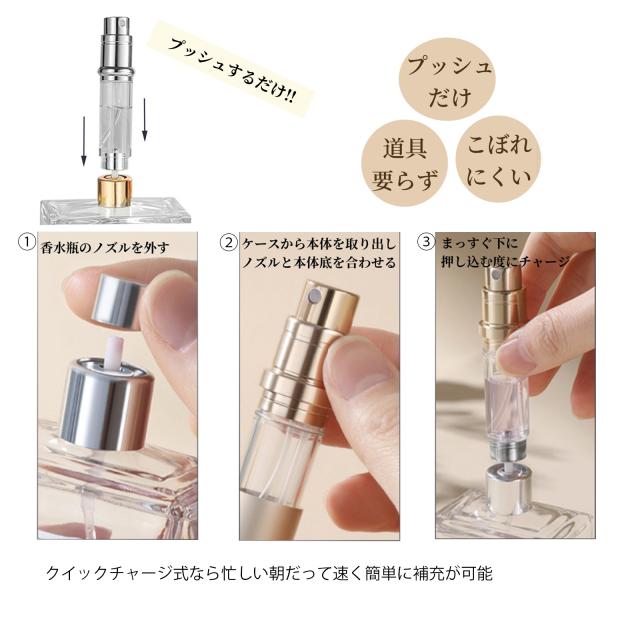 【最新改良版・漏れないバルブ底】香水アトマイザーの底は多重構造で従来品より密閉性アップから漏れにくいです、プッシュでワンタッチ充填を実現します。PCTG素材は衝撃に強くでガラスに比べて割れにくく、持ち運びでも壊れません。※メジャー採寸の為、サイズが多少異なる場合がございます。予めご了承ください。