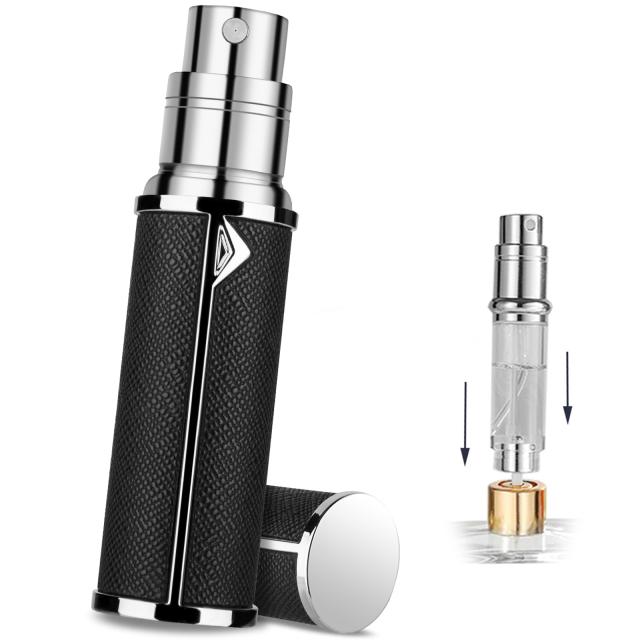 アトマイザー香水噴霧器 革詰め替え香水瓶 ポータブルと漏れ防止 底部充填 女性と男性 旅行ギフト 携帯用 プシュ式