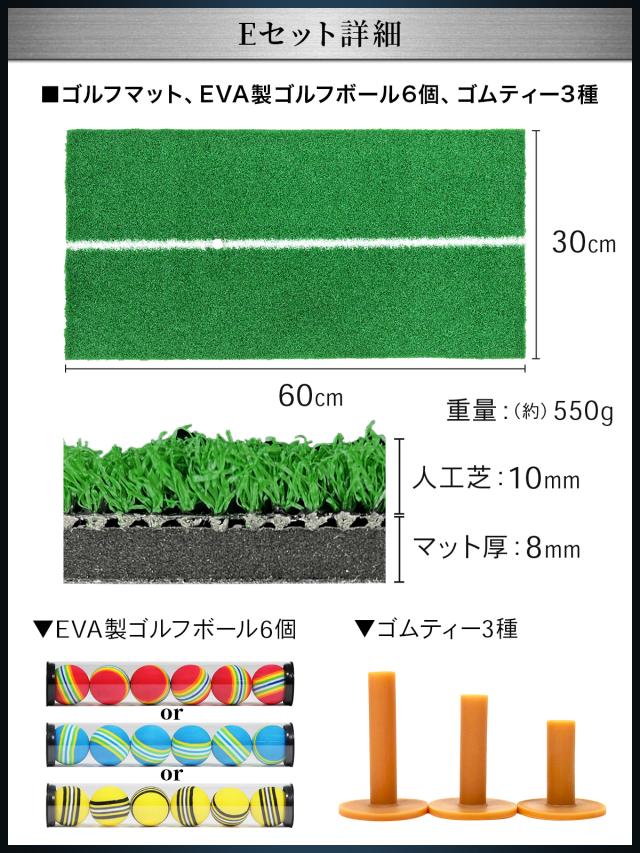 ゴルフマット、EVA製ゴルフボール6個、ゴムティー3個