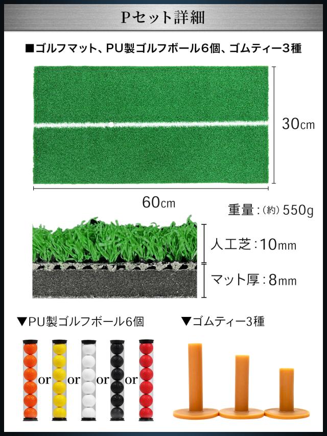 ゴルフマット、PU製ゴルフボール6個、ゴムティー3個