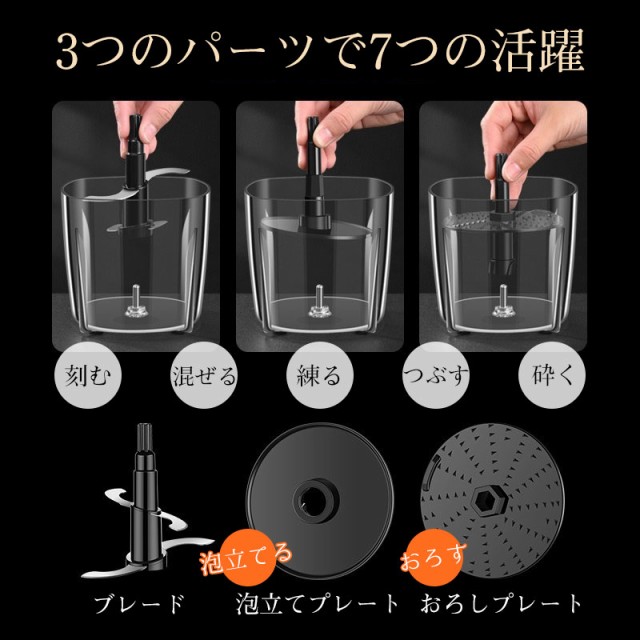 フードプロセッサー 電動 小型 ブレンダー ミキサー カプセルカッター 氷も砕ける おろし器 ホイップ 家庭用 離乳食 みじん切り