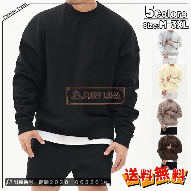 最安挑戦 春新作 送料無料 新作 パーカー メンズ トップス 長袖 春秋 ゆったり クルーネック プルオーバーパーカー 無地 スポーツ カジュアル フェイクレイヤード風 切り替え 春服 秋服 お兄系