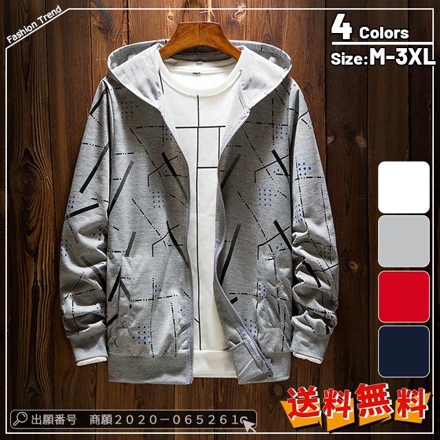 最安挑戦 春新作 送料無料 新作 パーカー メンズ 長袖 トップス ジップアップパーカー スポーツ フード付き ジップ ルームウェア おしゃれ 春 秋 スリム パーソナリティ プリント