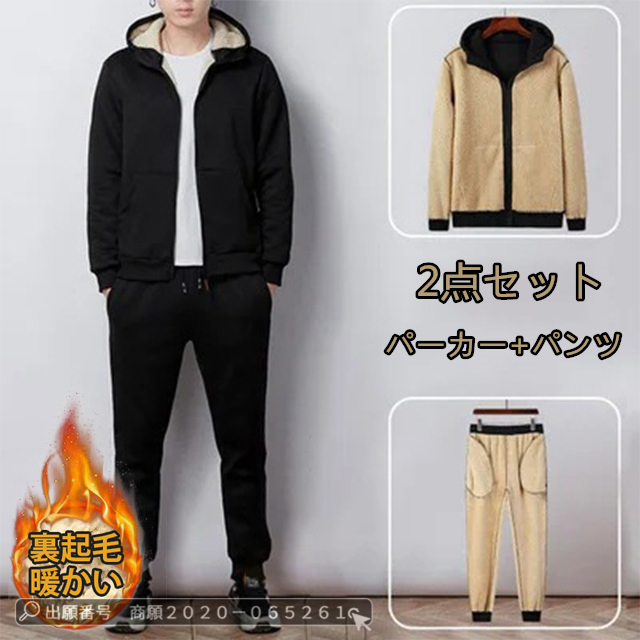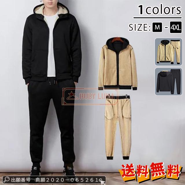 最安挑戦 冬新作 送料無料 新作 セットアップ メンズ 上下セット 秋冬 厚手裏起毛 暖かい パーカー ジップアップ 暖かい メンズ スウェット 長袖 セットアップ カジュアル ジャージ スリム 無地