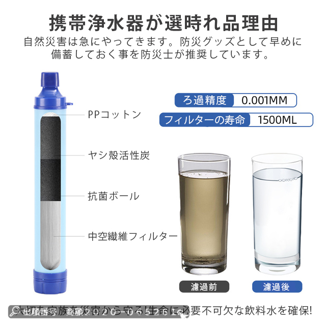 最安挑戦 冬新作 送料無料 新作 浄水器 携帯浄水器 濾過器 アウトドア 浄水器 キャンプ用品 非常用 防災グッズ 簡易浄水器 ハイキング 登山用 地震 災害 軽量 コンパクト 川の水ろ過機 持ち運び 緊急サバイバルギア アウトドア浄水器