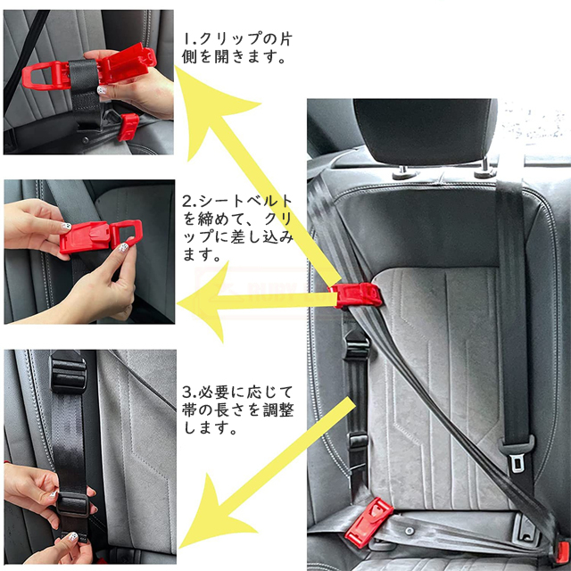 | 【特徴】 | 【簡単取り付け&携帯に便利】 装着方法も簡単で、シンプルな3つのステップで取り付けられます!ポケットサイズなので、タクシーに乗る時や必要な時はいつでも取り出して使います。丸めるとポケットサイズになるため、補助席前の収納(グローブボックス)やドアのポケットに手軽に収納しておけます。 【使用方法】 1. 下部のクリップを固定します。 下部のクリップを子供のお尻のそばにあるシートベルトの留め金に固定します。 2. シートベルトの長さを調節します。 シートベルトの長さを調節器で調節して、上部のクリップが子供の肩の位置に来るようにします。 3. 上部のクリップを固定します。 上部のクリップをシートベルトのストラップに固定します。シートベルトを曲げないようにしてください。 【3〜12歳のお子さまがいるご家庭に朗報!】革新的な形状で携行性に優れ、旅先のレンタカーやタクシーの車内など、利用場所を選びません。製品の重さはわずかに135g、後部座席に3人のお子様を乗せて使用できます。小さく軽量で持ち運びも楽々な本製品があれば、どんなシーンにも対応できます。 【子供の体格・成長に合わせて調節可能】 推奨年齢:3歳〜12歳、推奨体重:15kg〜36kg、調節可能範囲:25cm〜60cm。ストラップクリップは赤ちゃんの体型に合わせてシートベルトの長さを調整でき、体格と体重に合わせて買い替える必要がなく、長期間ご愛用いただけます。細部まで人間工学に基づいて設計されています。 |