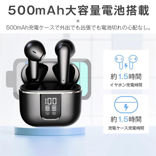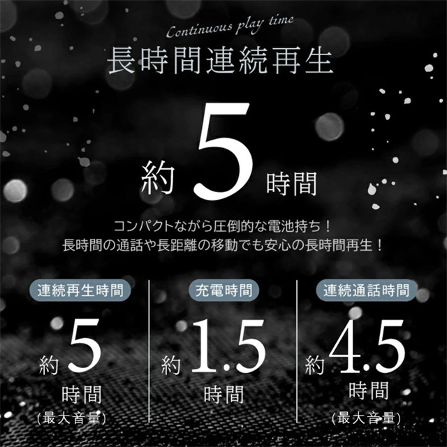 | バッテリー容量 | ◆ケース:3.7V 500mAh ◆イヤホン:3.7V 40mAh |