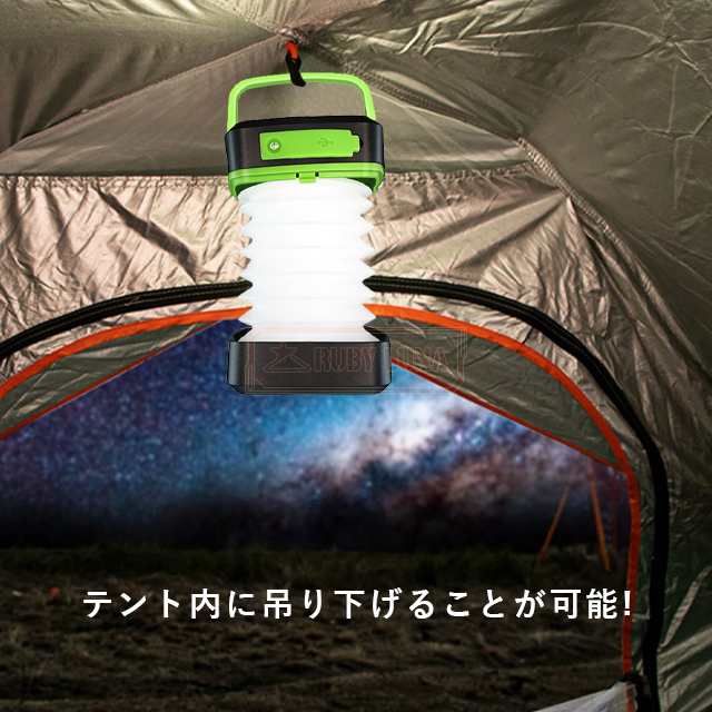 | 【ランタン&懐中電灯】 | ◆ライトの種類は懐中電灯とランタン2パターンがございます。操作方法も簡単で、一度電源ボタンを押すと懐中電灯になります。上部の蓋を引き伸ばすとランタンになります。引き伸ばせば点灯、縮めれば消灯の簡単操作は暗い場所でも便利です。震災等非常時の際にもランタンと懐中電灯を確保することが出来て安心です。 |