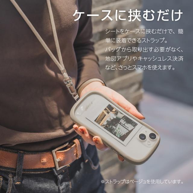ネックストラップ 多機能 ライトグレー 丸紐 挟み込みシート 2WAY 肩掛け 首掛け iPhone Android スマホ