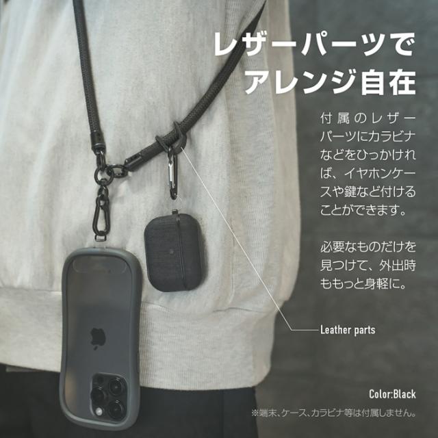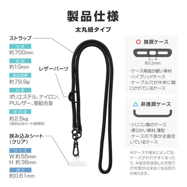 ショルダーストラップ 多機能 ブラック 挟み込みシート 丸紐 極太 肩掛け iPhone Android スマホ